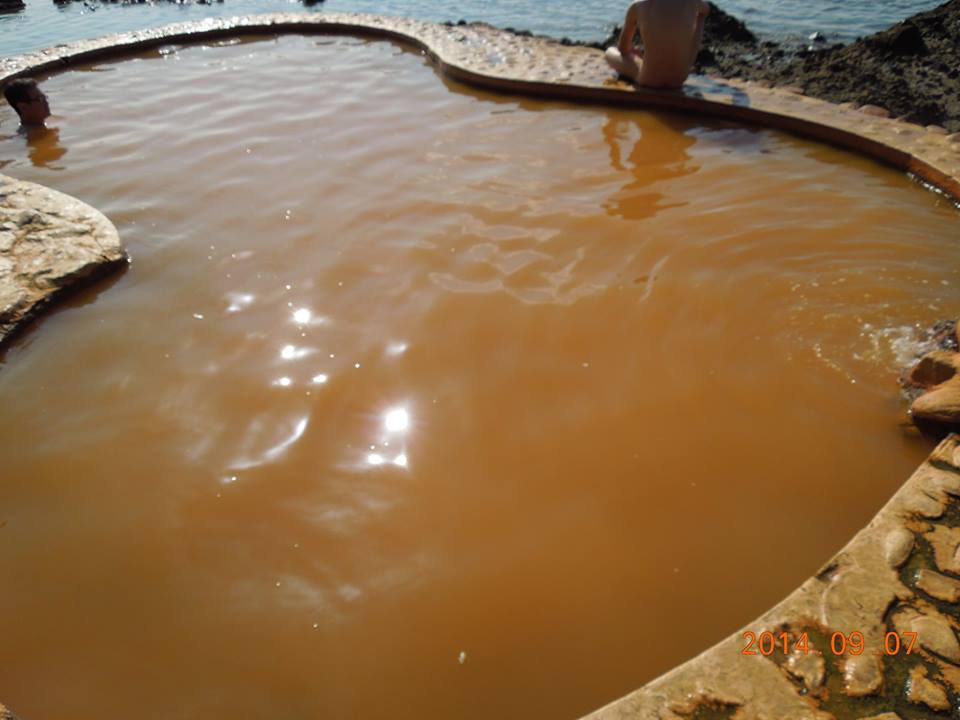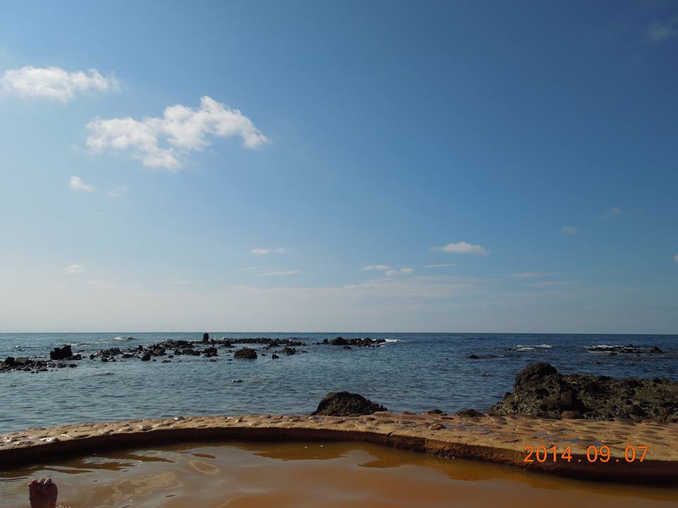 子宝の湯は混浴の方だと説明されて、二人でそちらに入りました。湯船の中ほどにある丸い大石に二人で触れると良いそうです。