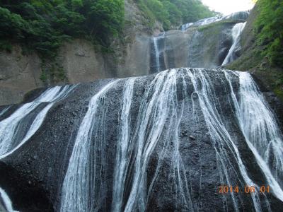 滝に向かうトンネルの入り口では、営業準備の方がいましたが、「時間前だから無料だよ。」と通してくれました。トンネルを抜けると眼前に袋田の滝です。しばし見入っているうちに営業時間になり、展望台へのエレベーターが動き始めました。それで展望台へ上がりましたが、特に展望台だから滝の景色が良いというほどではなく感じました。