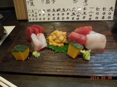 狭いながら美しく手入れされている庭を見ながら夕食をいただきました。お腹いっぱいになり最後の名物岩国寿司が一口しか食べられなかったのが残念でした。
