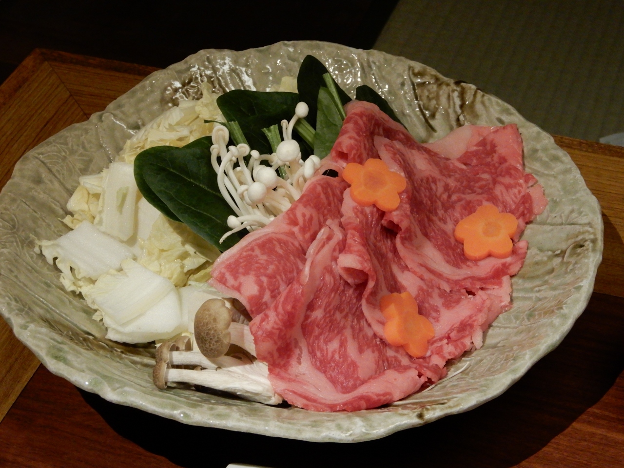 Go-to再開までの限定プランで、夕食のメインは、山形牛の陶板焼き・しゃぶしゃぶ・すき焼きから選択でした。私たちは「すき焼き」にしましたが、大変美味しく頂きましたよ。周囲のテーブルは皆「陶板焼き」だったようでしたが。