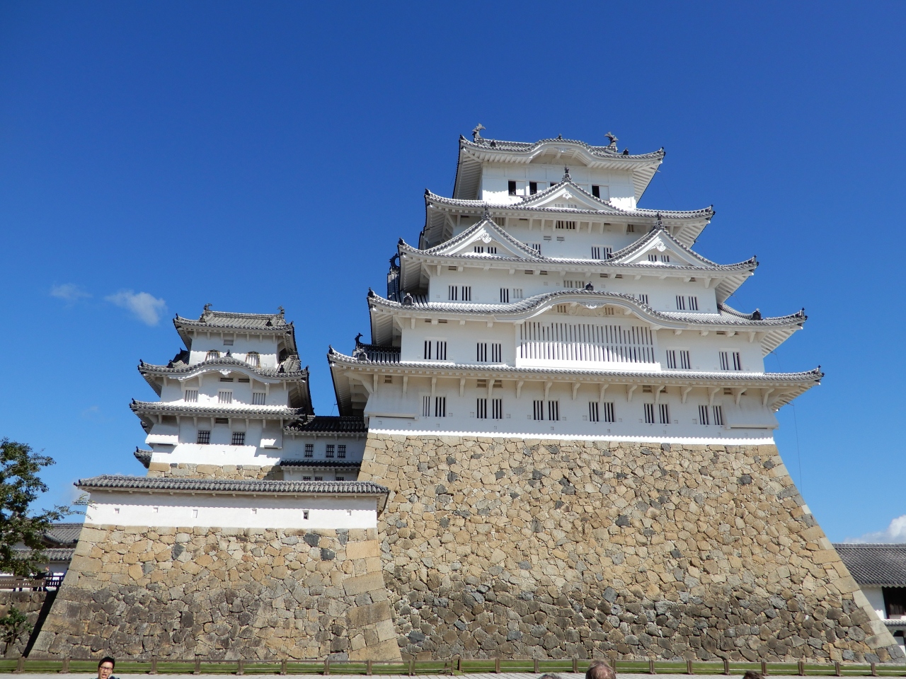 壮麗な姫路城の天守群がこの備前丸(本丸)にあります。天守群は少し離れた場所から眺める方がその美しさを堪能できるのですが、この本丸から見上げる大天守には圧倒的な迫力を感じます。備前丸南端のベンチに座ってゆっくり見上げていましたが、たびたび写真撮影を頼まれました。喜んで引き受けましたよ。