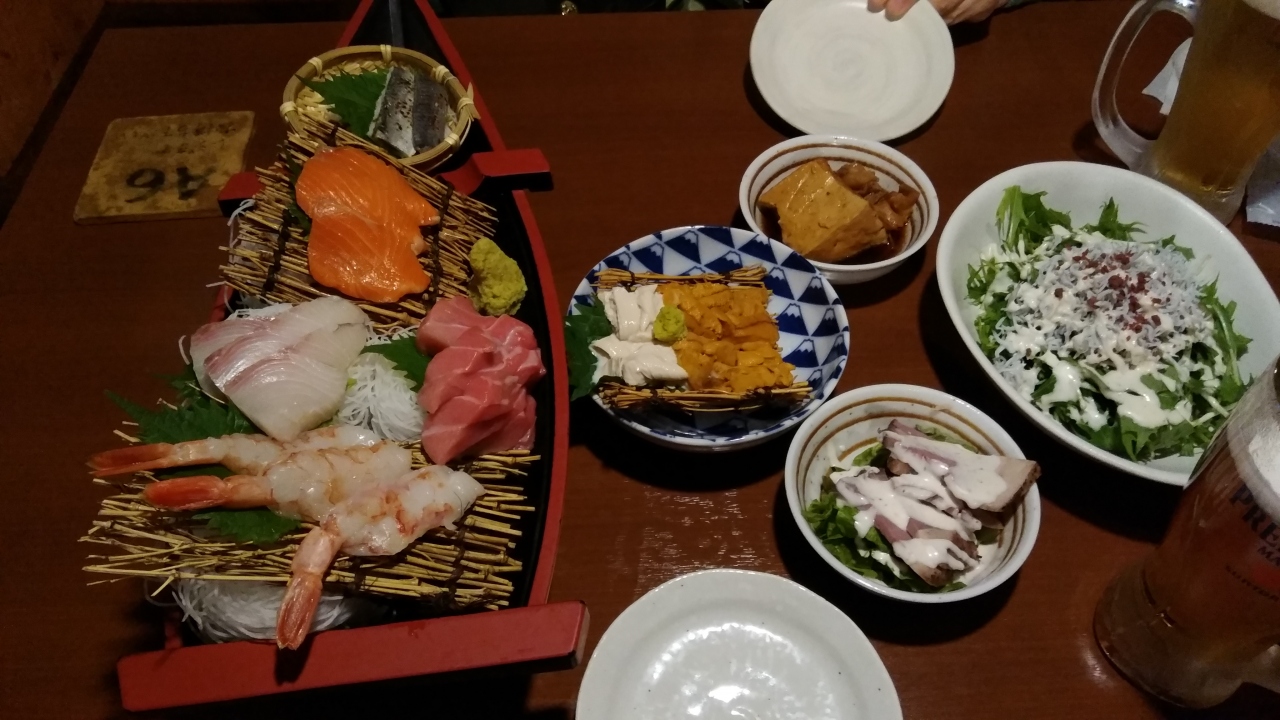刺身が新鮮で美味しかったです。サラダも美味しかったですね。しかし、そのほかの料理はうーん値段相応なのかな。前菜のローストビーフにかかっていたソースがチーズを混ぜたソースだったのか臭いがきつく食べれませんでした。ビールは安いですよ、300円だったかな?