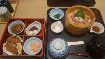 ちらし寿司の様に見えますが、すし飯ではなく、暖かいご飯の上に刻んだ刺身が乗っています。これにウニ味のたれをかけて頂くと美味しい! 付属するカキフライ2個も美味しい! 牛肉も美味しい! 敢えて残したひつまぶしに出汁を掛けてお茶漬け風に食べるのもまた美味しい! 最後に白玉+あんこの和風デザートまで美味しかった! また行きたい!!