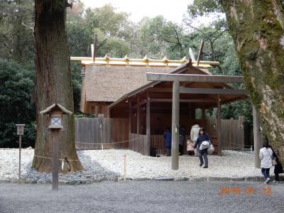 外宮の別宮の一つで、天照大神の弟神を祀ってあります。外宮から月夜宮へ向かう神様がお通りになるという直線の道は、中央に色分けがなされています。これは中央は神様が通る部分なので人々はそこを避けましょうということなのでしょう。ゆっくり歩いても5-6分で行けます。ここは離れているからなのか、正月の3連休だというのに人は少なかったです。街中なのに深い森に包まれているような荘厳な雰囲気がありますよ。外宮参拝の際は必ず寄られることをお勧めします。