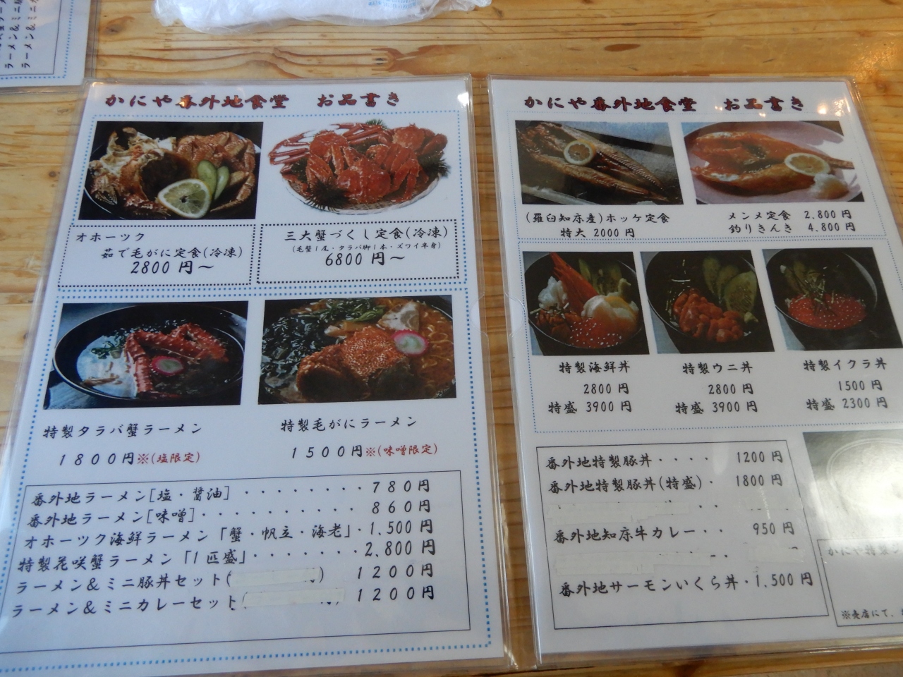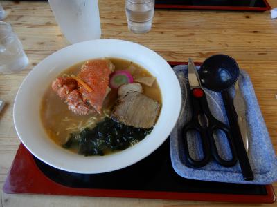 蟹を食べようと意気込んで行きました。しかし、蟹の産直屋さんですから新鮮だろうとは思いますが、お高いので躊躇してしまいましたよ。結局茹で蟹半身の入った蟹入り味噌ラーメンを頼みました。 蟹用にスティックやハサミを用意してくれるので食べやすいです。蟹は大変美味しかったですよ、でも味噌ラーメンは・・・。