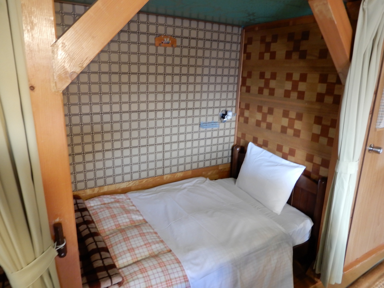 ここは山小屋だ! と十分認識してから行くと良いと思います。 クチコミ3件がすべて最高でしたので、気の利いたペンションを想像していました。 しかし建物も内装も素人が造った感満載です。 通された部屋はベッド2つ、備え付けの二段ベッド2か所、押入れ改造?ベッド一つ。ベッドメイキングは3つしてあり、ベッド自体の清潔感は十分でした。