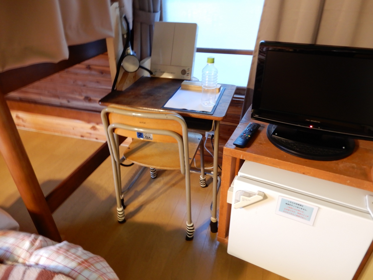 空気清浄機、冷暖房完備です。デスクは中学校用?のパイプ製。