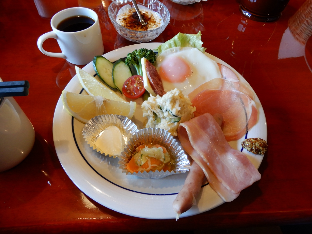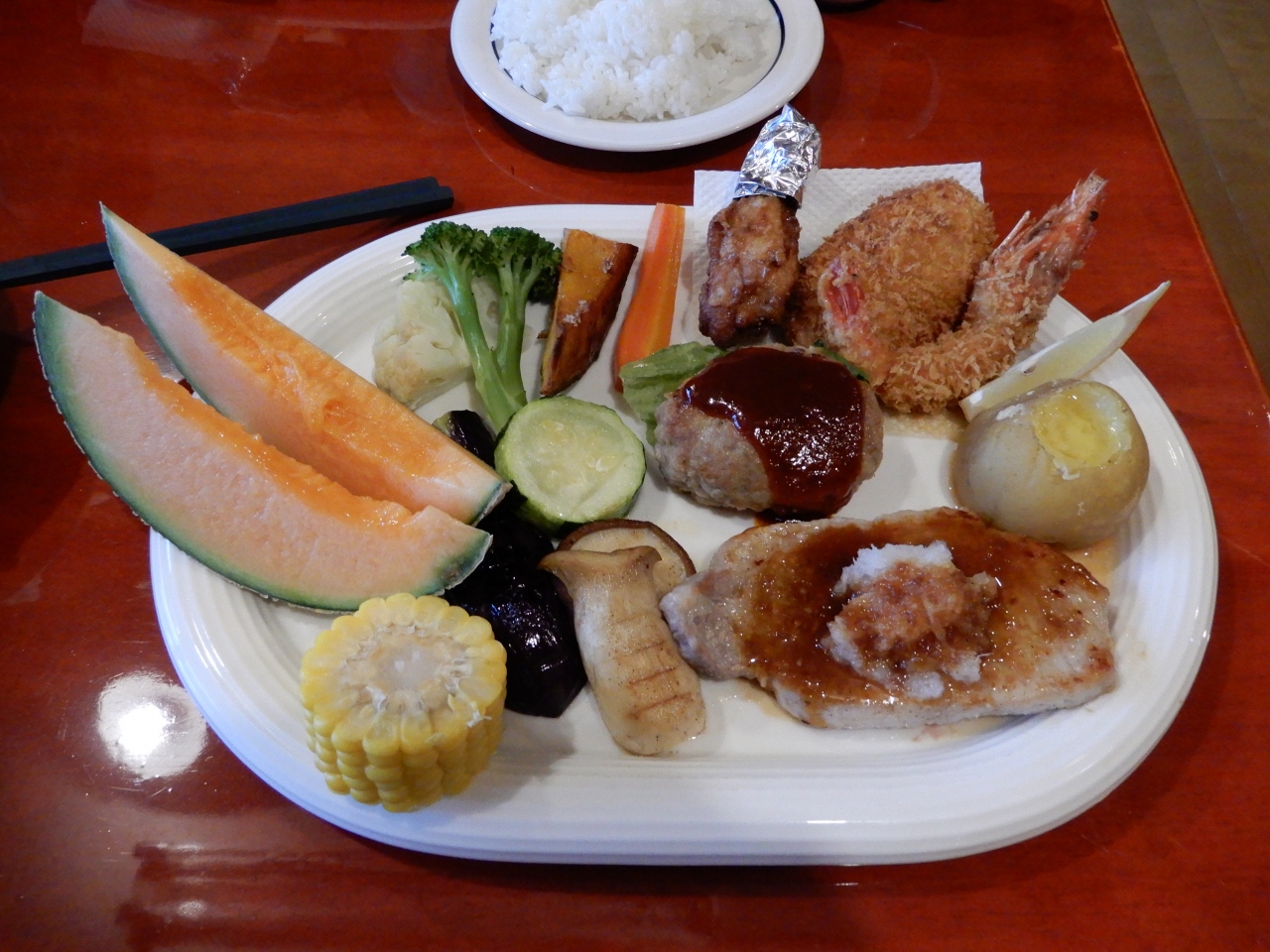 食事はボリュームがあります。美味しそう! でも肉類が多く野菜が少ないのが残念。若い人たちは喜ぶかな? 1階のトイレは広いけれども配置に難あり、ペーパーが左後方に位置するので非常に使いにくいです。やっぱり建築家が設計に関与していないのでは?と思います。ただし清潔感はあります。