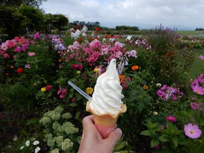 あいにく羊蹄山は見えなかったけど、公園のようなお庭でいただくソフトクリームは最高です。- 旅行時期