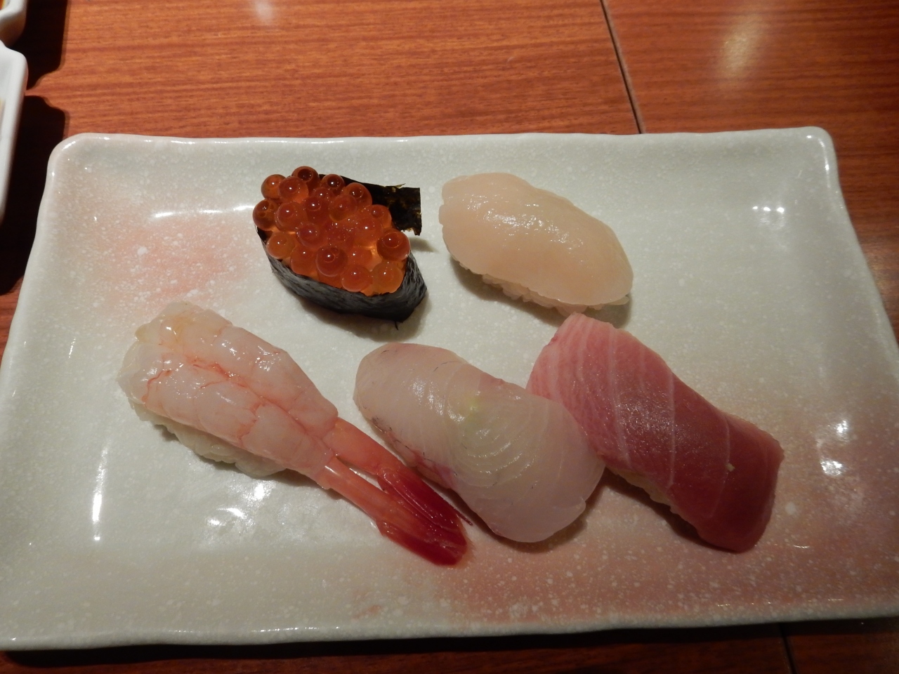 握りは5カン 美味しかった。 小食の私たちにはちょうど良い量でしたね。