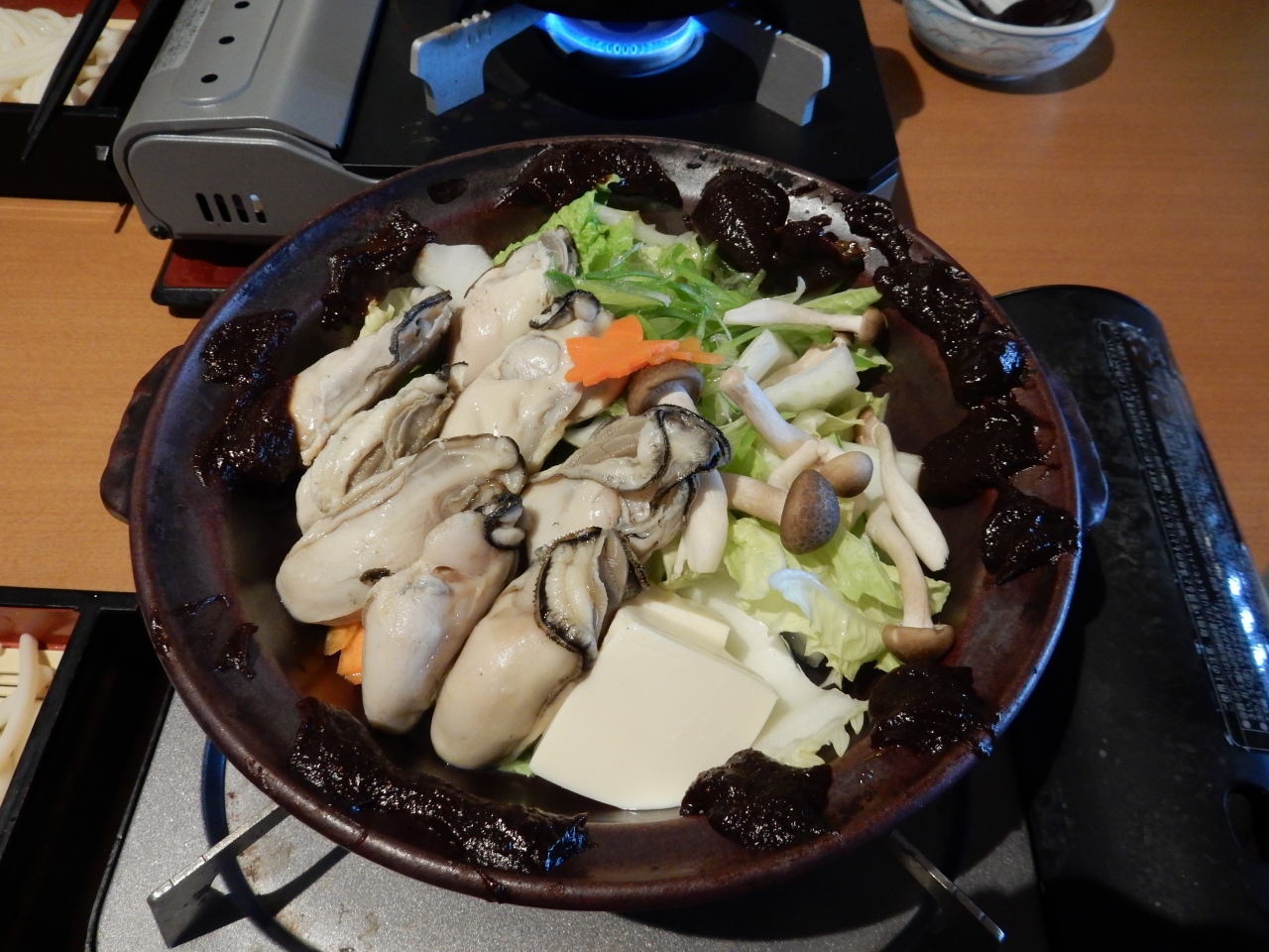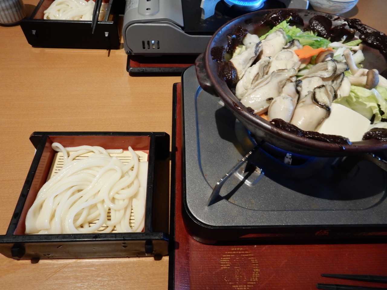 牡蠣は蒸してあるので火が通らないという心配はなく、温まったらいただけます。最後にウドンを煮込んでいただきますが、これが美味い! うどんの追加しちゃいましたよ。追加は162円で安いでしょ?