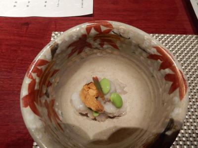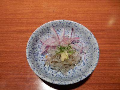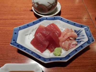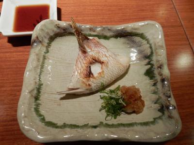 生エビス小(593円)を頼んで、お疲れさんの乾杯。 3,334円のお試しコースを頼みました。 白魚の小鉢、漬け鮪と赤貝の小鉢、鯛のかま焼き、どれも美味しかったですよ。鯛カマは煮か焼くかを聞いてくださいました。気が利きますね。