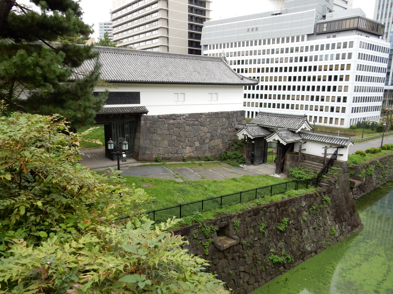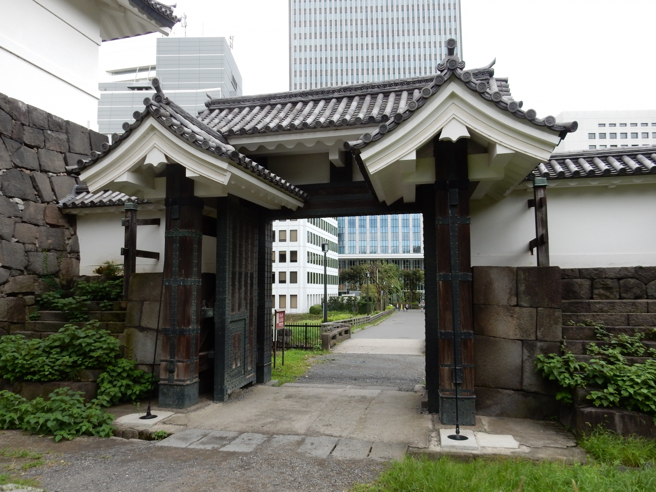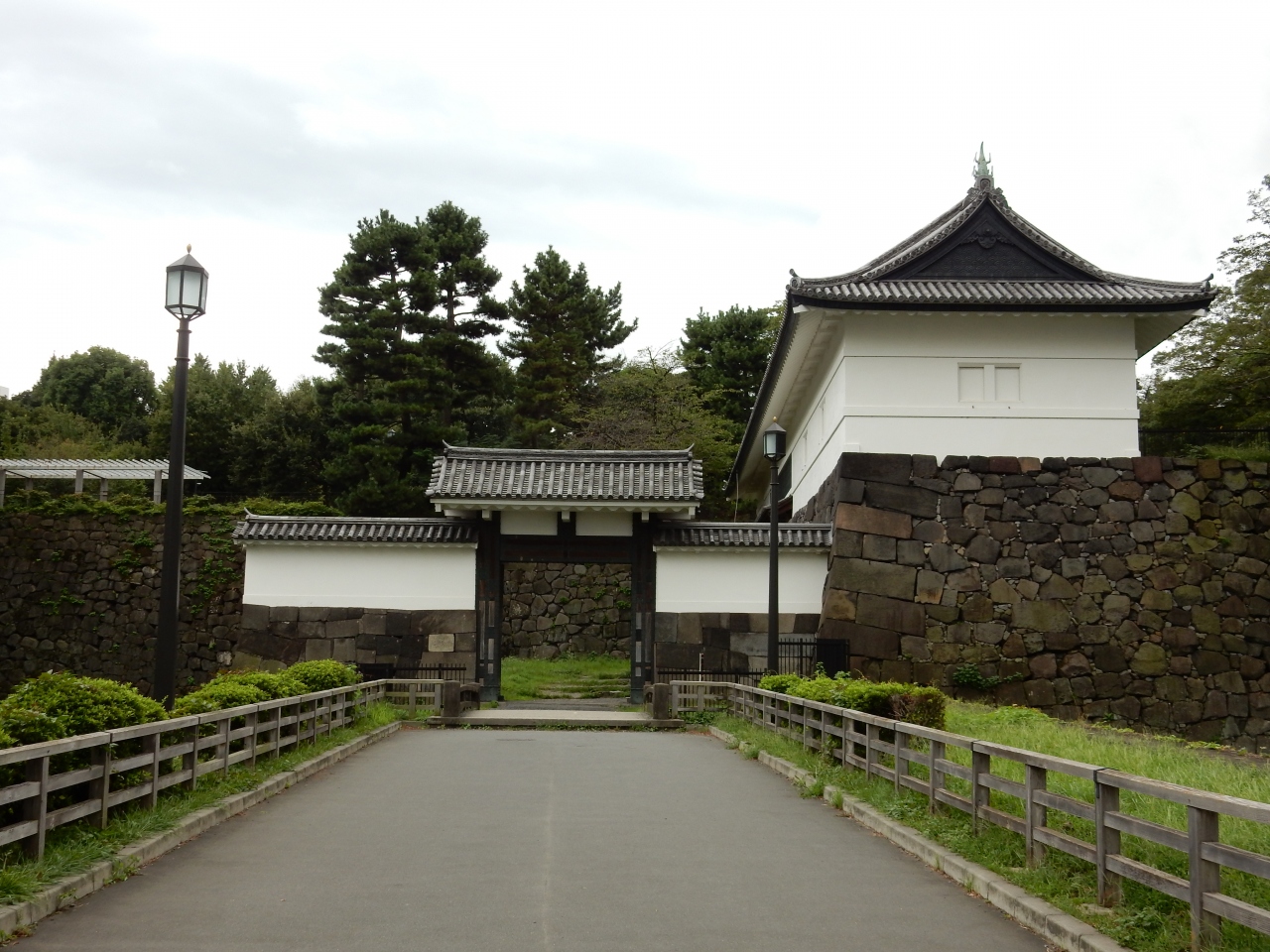 江戸城北の丸東北に位置する門です。 正面の高麗門を入ると右に櫓門があり、左は濠で小さな枡形を形成しています。北の丸から見下ろす写真でその枡形の構造が良く分かります。高麗門は小規模で、左右の土塀も短く防御力は高くありません。しかし高麗門を破って枡形に入っても、櫓門に向かえば後左上方から射撃を受けます。枡形が狭いので、いざ門を開いて押し出せば、敵兵は濠に落とされることになります。よく考えられた構造だと思います。