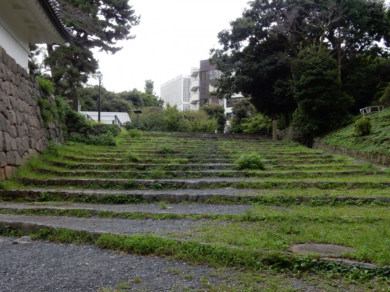 江戸城とは思えぬ古びた雰囲気、草の生えた登り難い石段が往時を偲ばせます。