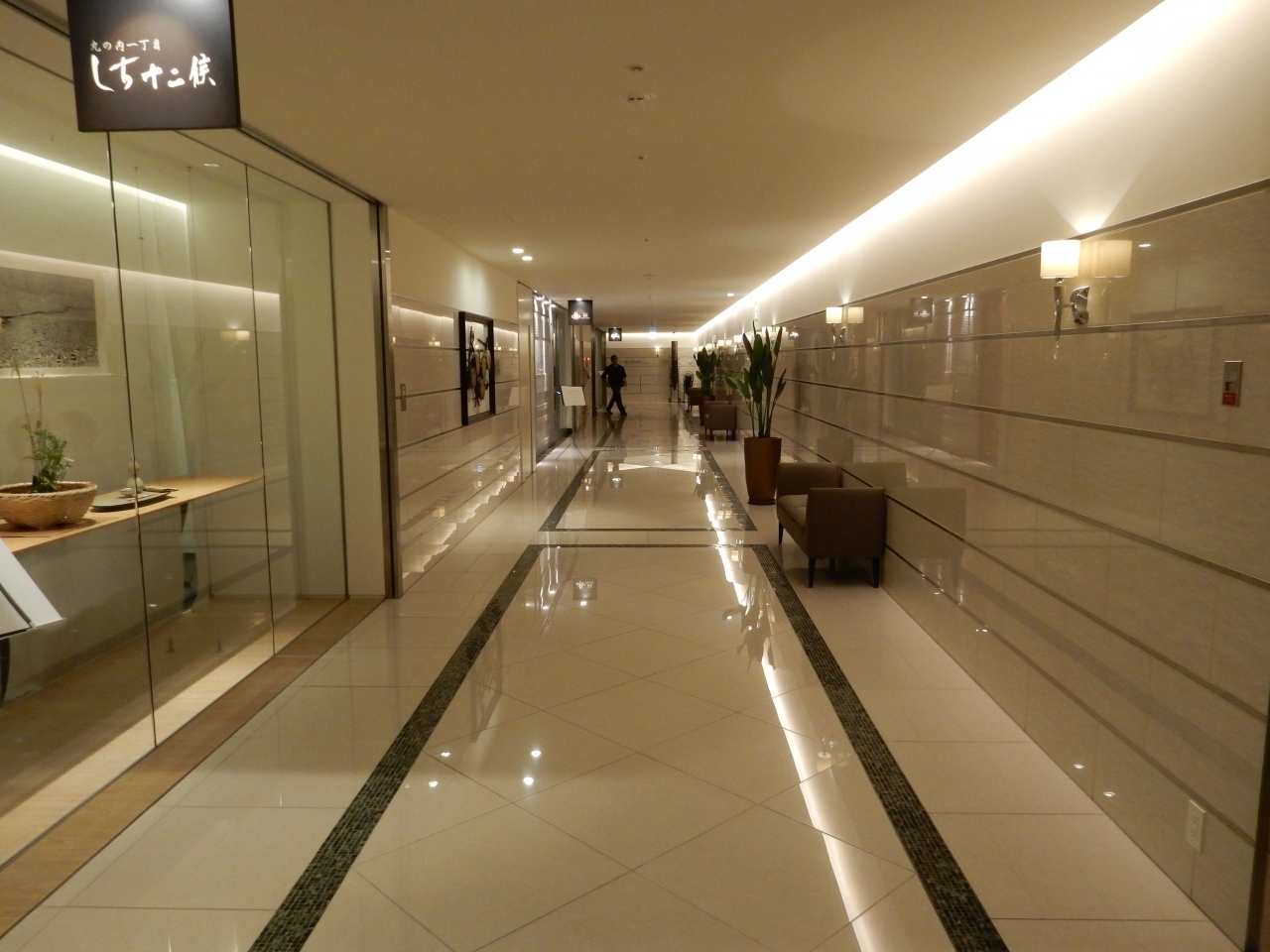 丸の内南口の改札を出て直ぐの階段を降りると、東京ステーションホテルのレストラン街があります。 東京駅の地下街は有名店もあるようですが、人がごった返していて様々な匂いも混ざり合い、食事をする気にはなれません。しかし、ここは同じ東京駅の地下とは思えないくらい人通りは少なく静かで、通路は美しく磨き上げられています。トイレも一流ホテルのものなので、大変清潔で使い勝手も良いです。