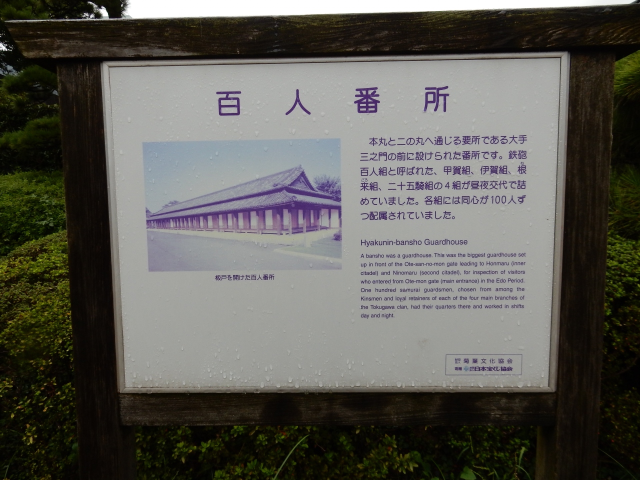 中之門の石垣の迫力あるイメージに圧倒されつつ歩いていると、中之門内側にあるこの「大番所」は見過ごされてしまいそうな質素な造りです。大番所の奥には本丸の高石垣が迫っていますが、その上に並んでいた本丸御殿は、贅を尽くした煌びやかなものだったでしょう。名古屋城の様に本丸御殿が復元できたら、比較もできて面白いのですが。
