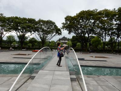 江戸城巽櫓の見える噴水公園、レストランには100名城スタンプあり。