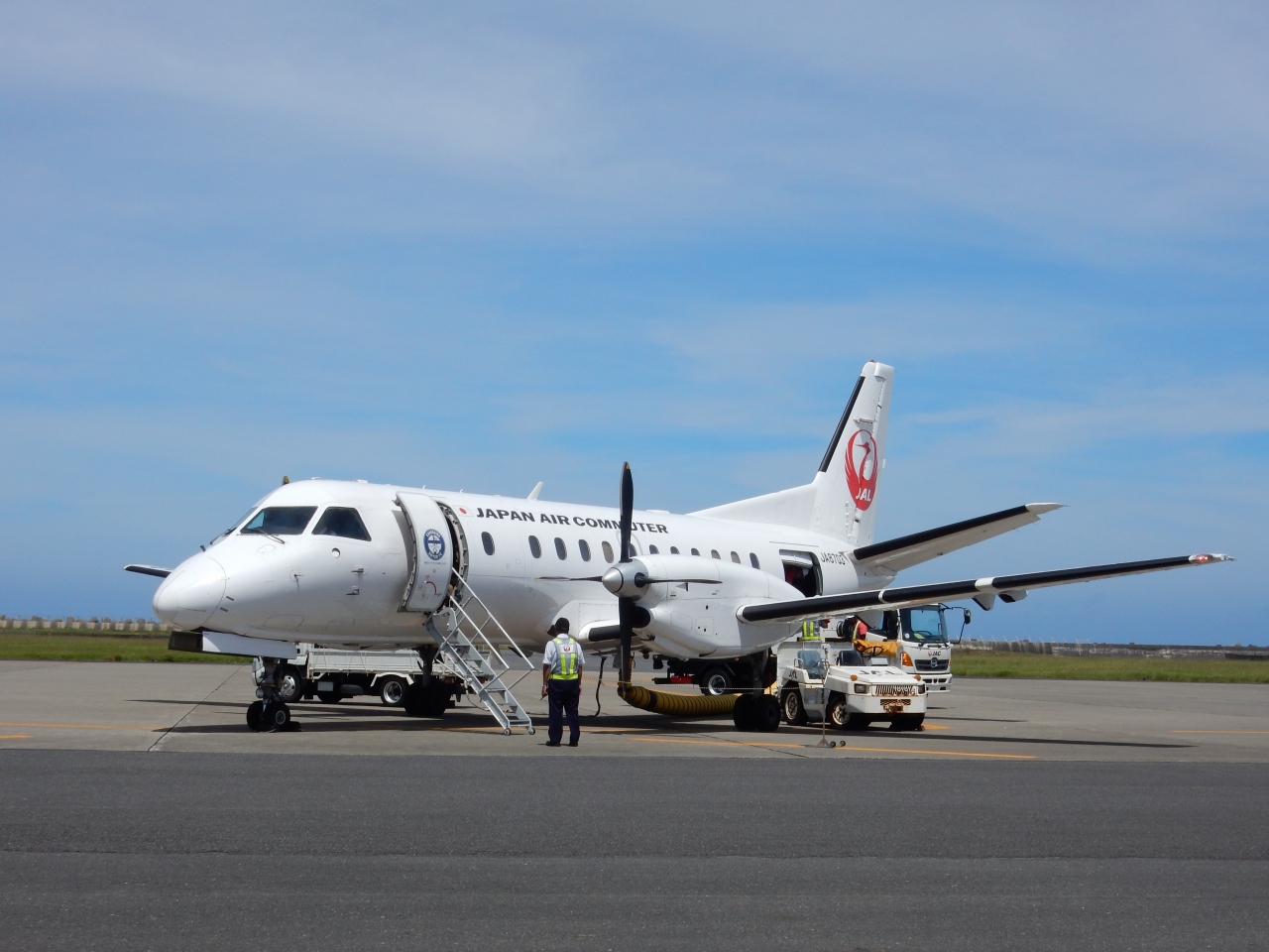 以前は、ジェットが飛んでいましたが、今は双発のプロペラ機(とは言ってもターボプロップジェットエンジン)のみ飛んでいます。