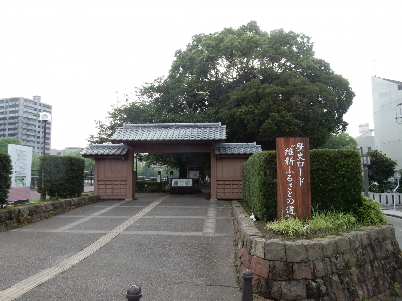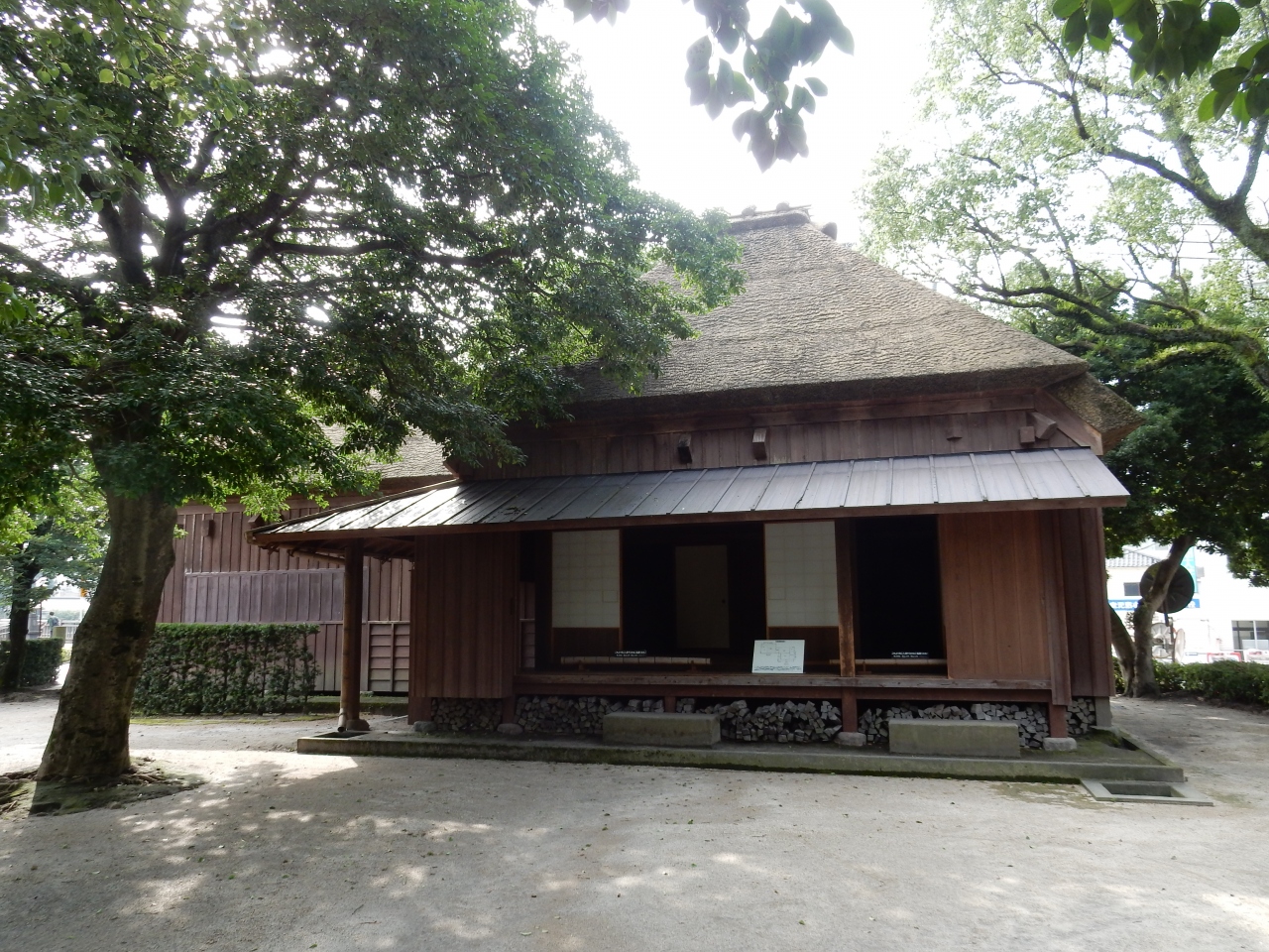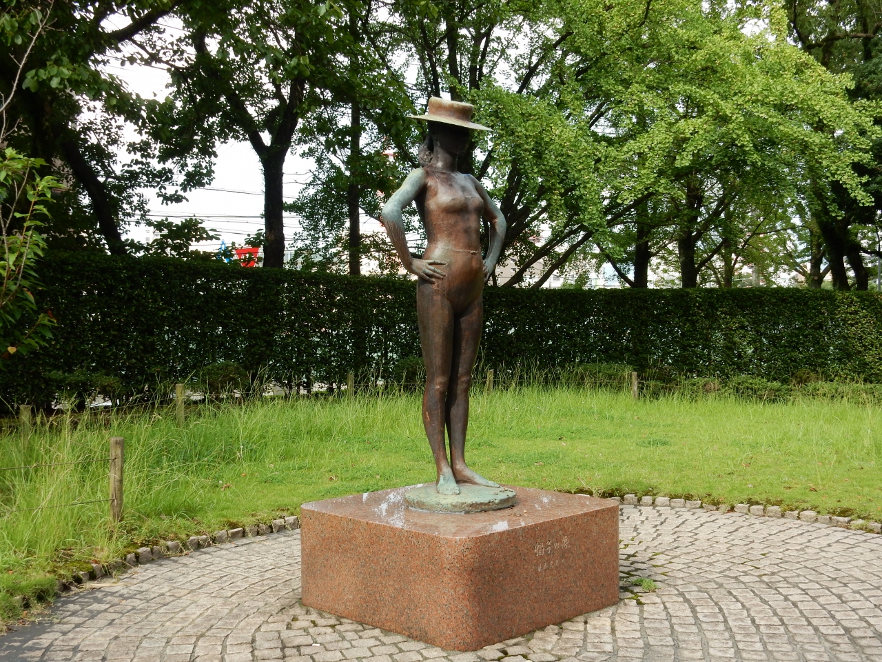 甲突川沿いにある緑の散歩道です。地元の親子が蝉取りに来ていました。子供の小さなプールがあったり、ブロンズ像があったり、中級武士の館の復元があったり楽しめます。