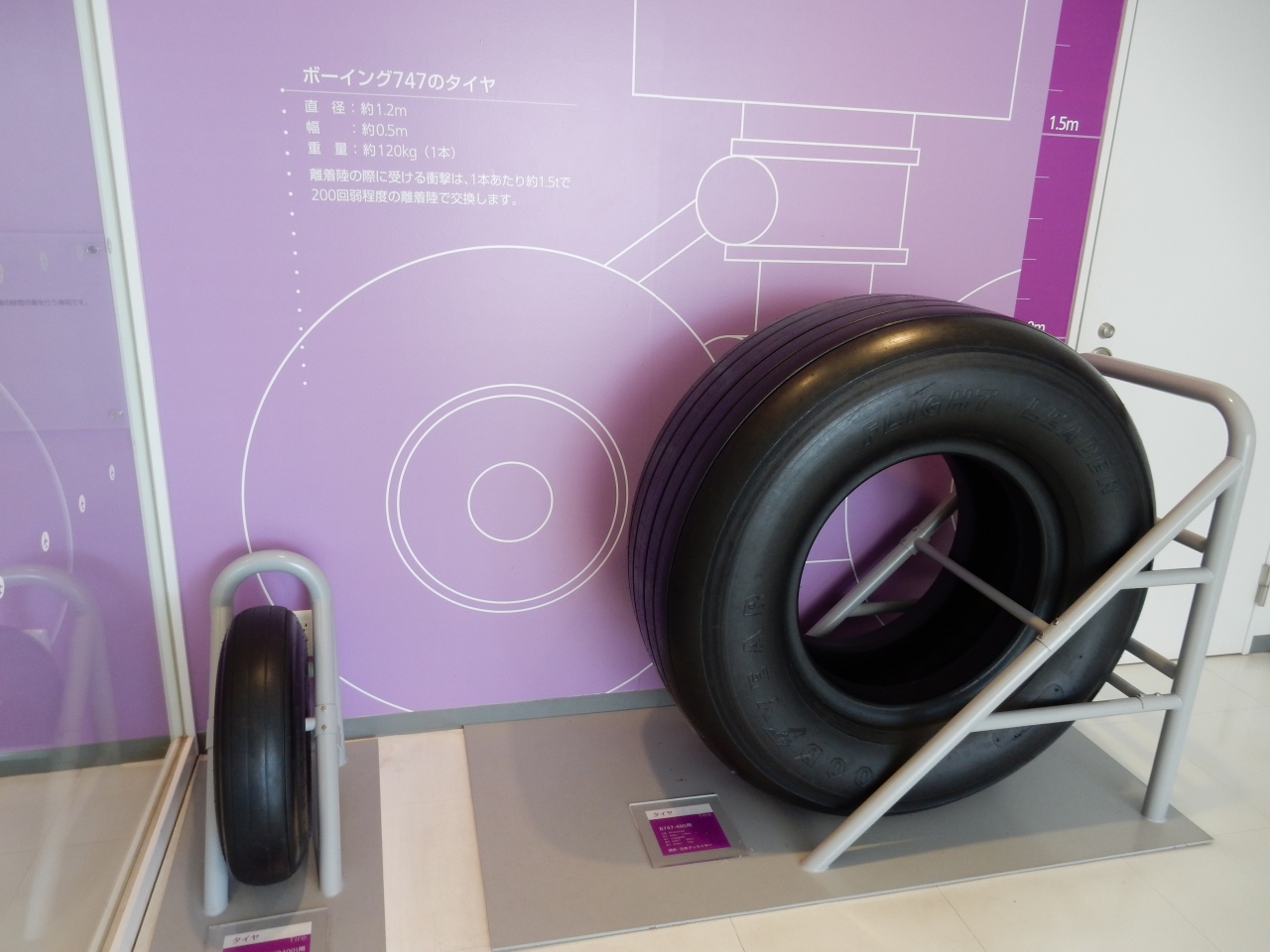 エンジンの一部や、旅客機のタイヤの実物にも触れることができます。フライトシュミレーターもありますよ。 楽しめますねー! そして空港展望デッキに繋がっていますので、本物の発着する飛行機を眺めることもできます。