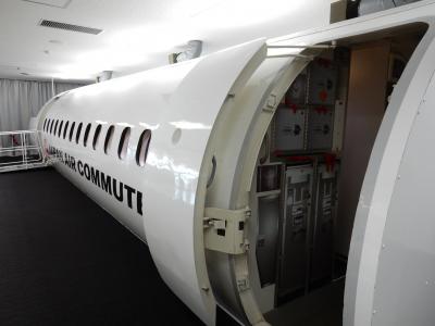さらに進むと実物の旅客機の胴体の一部が展示されており、中に入ることができます。