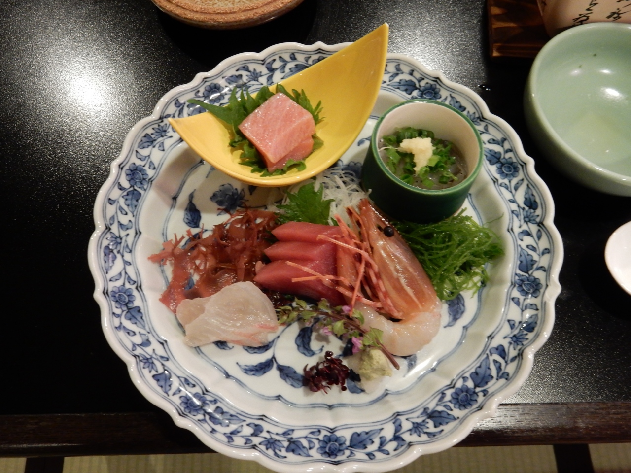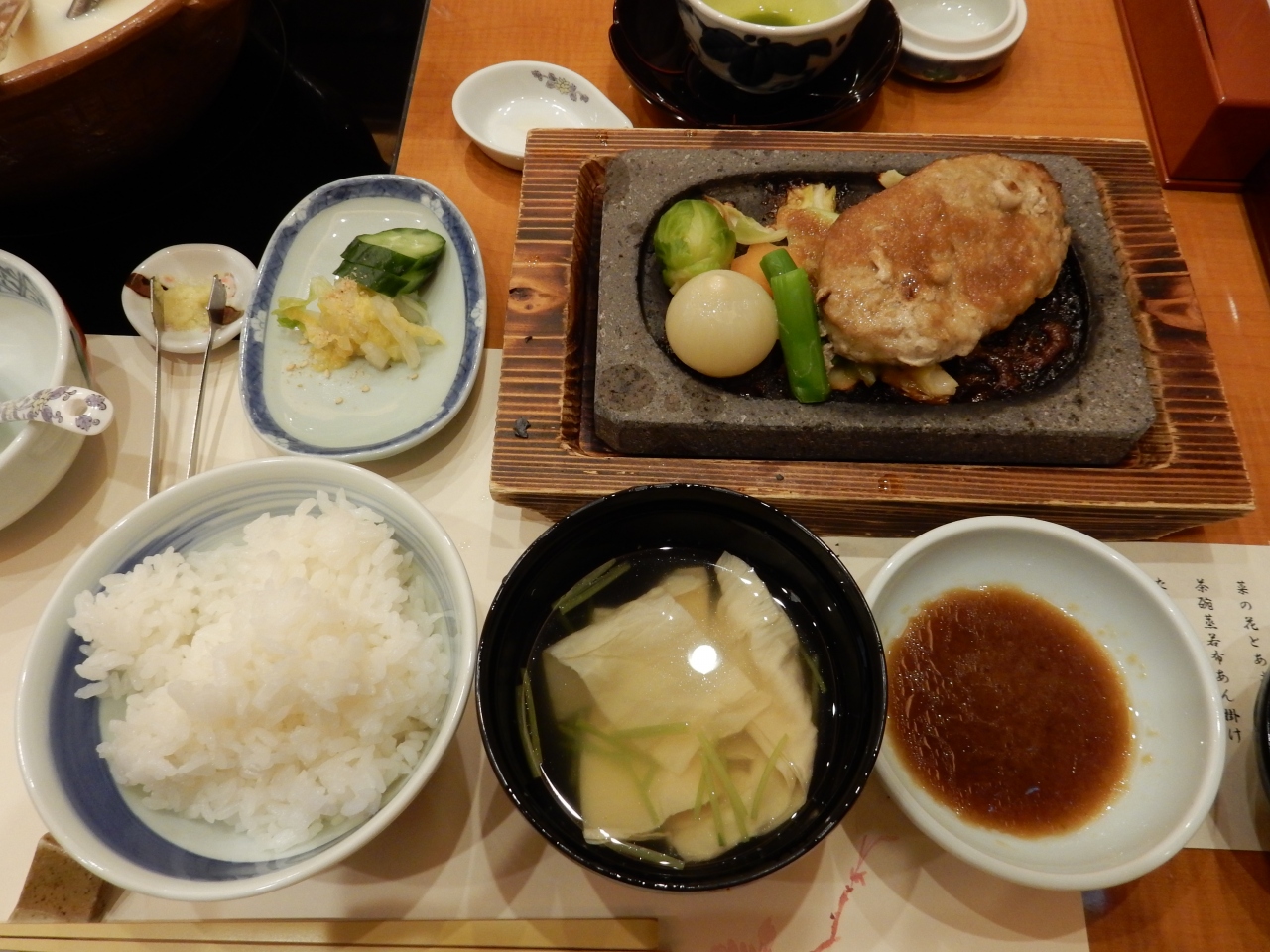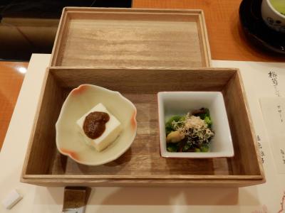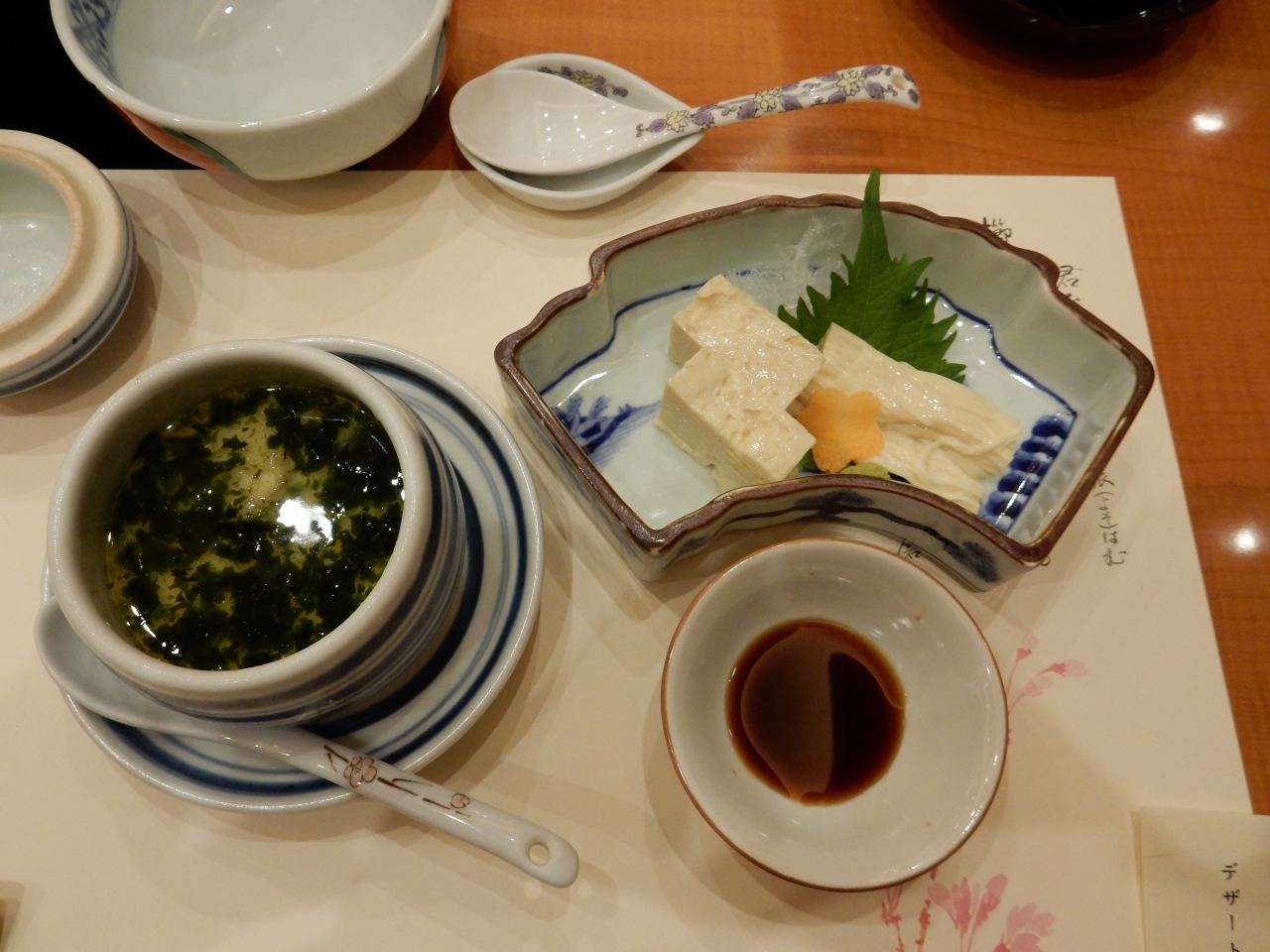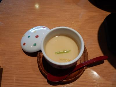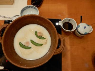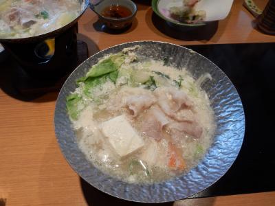 ランチの「妻籠」税別2,000円をいただきました。豆乳仕立ての豚の鍋は、結構なお味でした。小さなサケの焼きものも美味しかったですね。天婦羅、茶碗蒸、アサリの佃煮の乗ったご飯、赤だし、デザートの葛きりまで、値段にしては美味しかったと言えます。