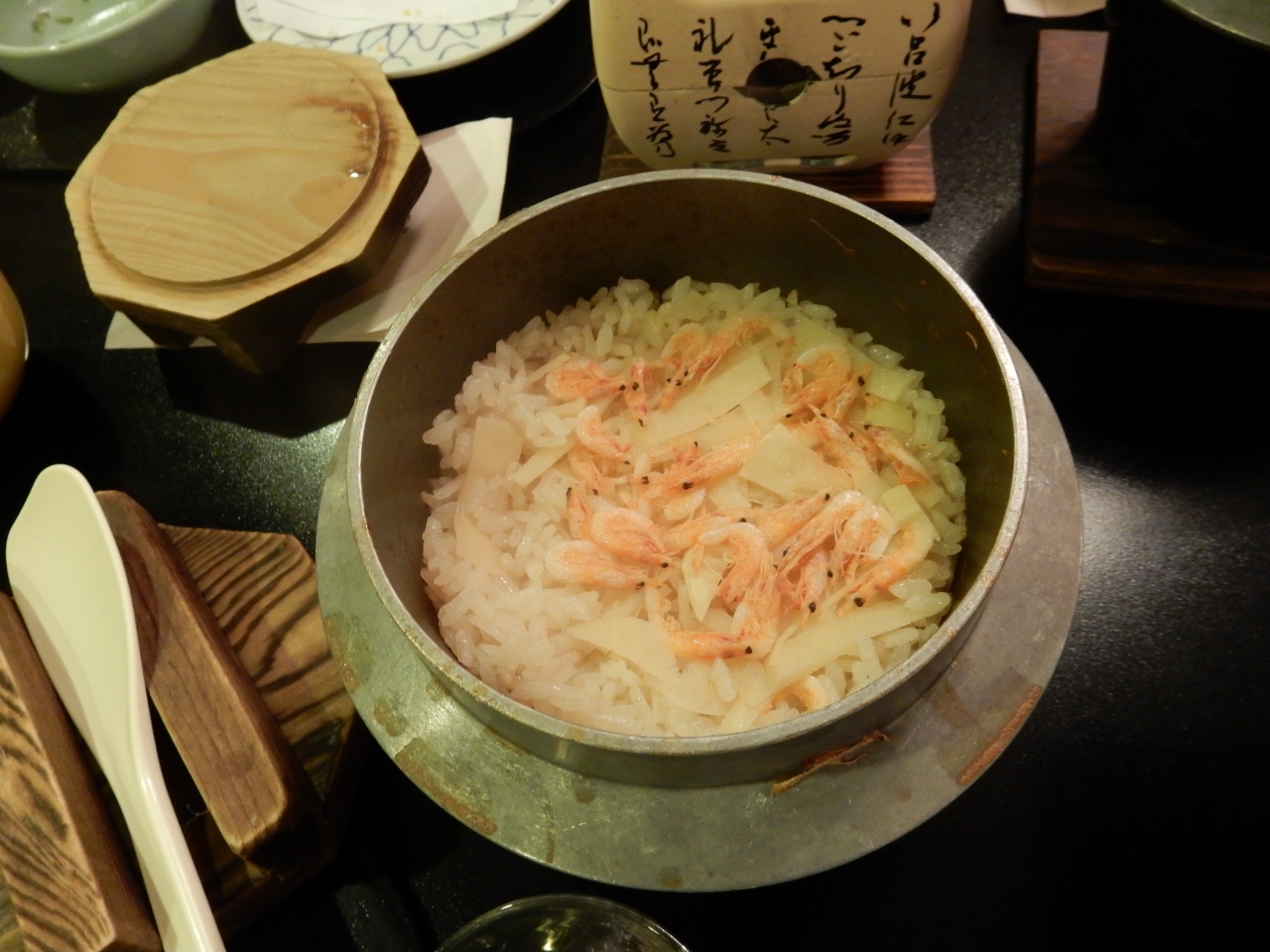 夕食は、すべてが美味しかったです。上品な味に設定されていたようです。全員が等しく「美味しかった!」と言っていました。シラスの鍋は特に美味しかったですね。加熱の仕方卵の入れ方の説明もわかり易く説明してくださいました。