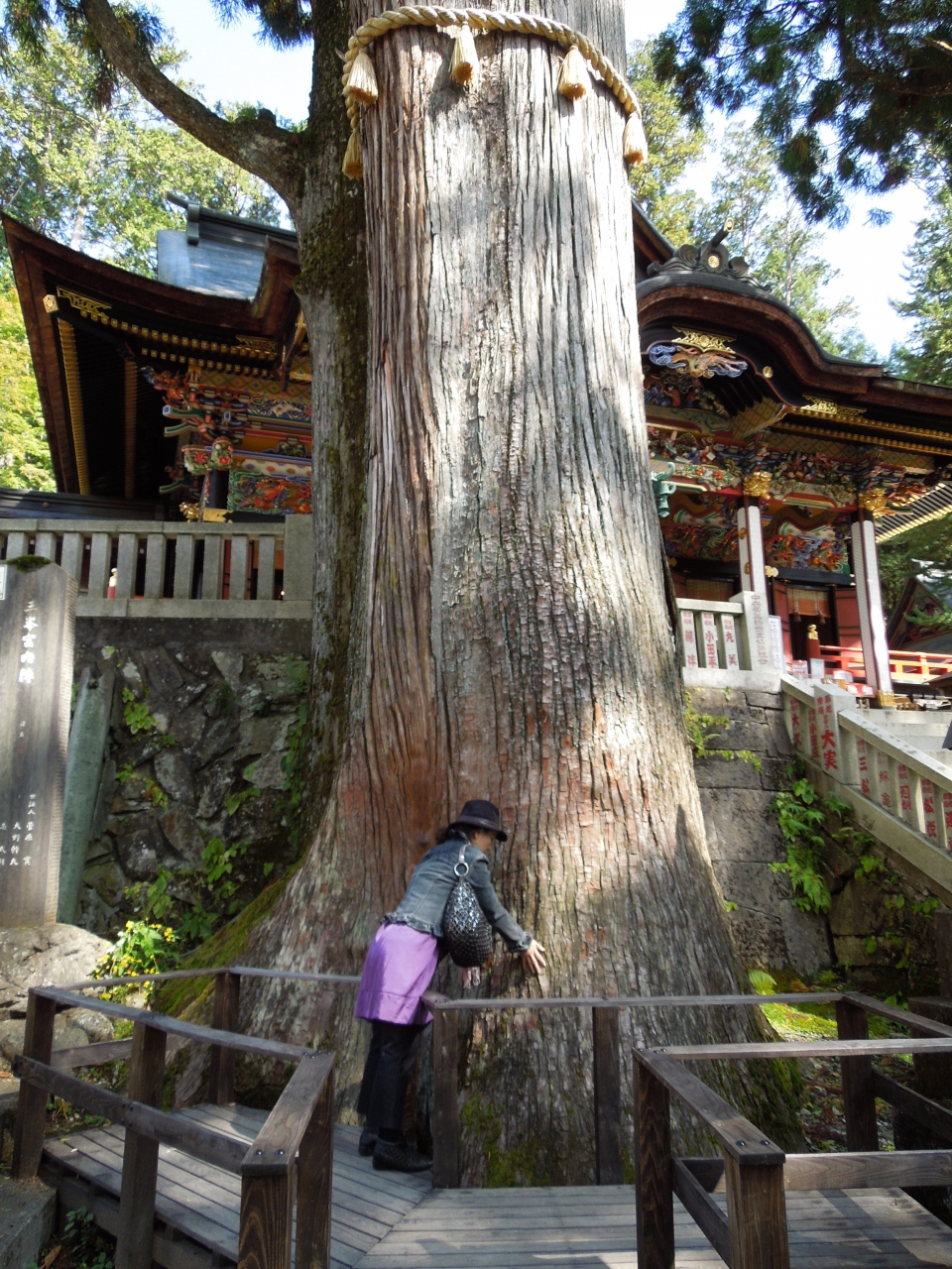 極彩色に装飾された社殿は見事です。社殿足元の石畳に竜が浮かび上がっていましたが、これは本当なのか?驚きでした。クマに注意の看板があり、熊の爪痕が建物に残っていたりで、多少ビビります。本殿前の御神木の大杉はパワーが溢れていました。休憩所でいただける御神水で入れたコーヒーをいただきましたが、美味しかったですよ。