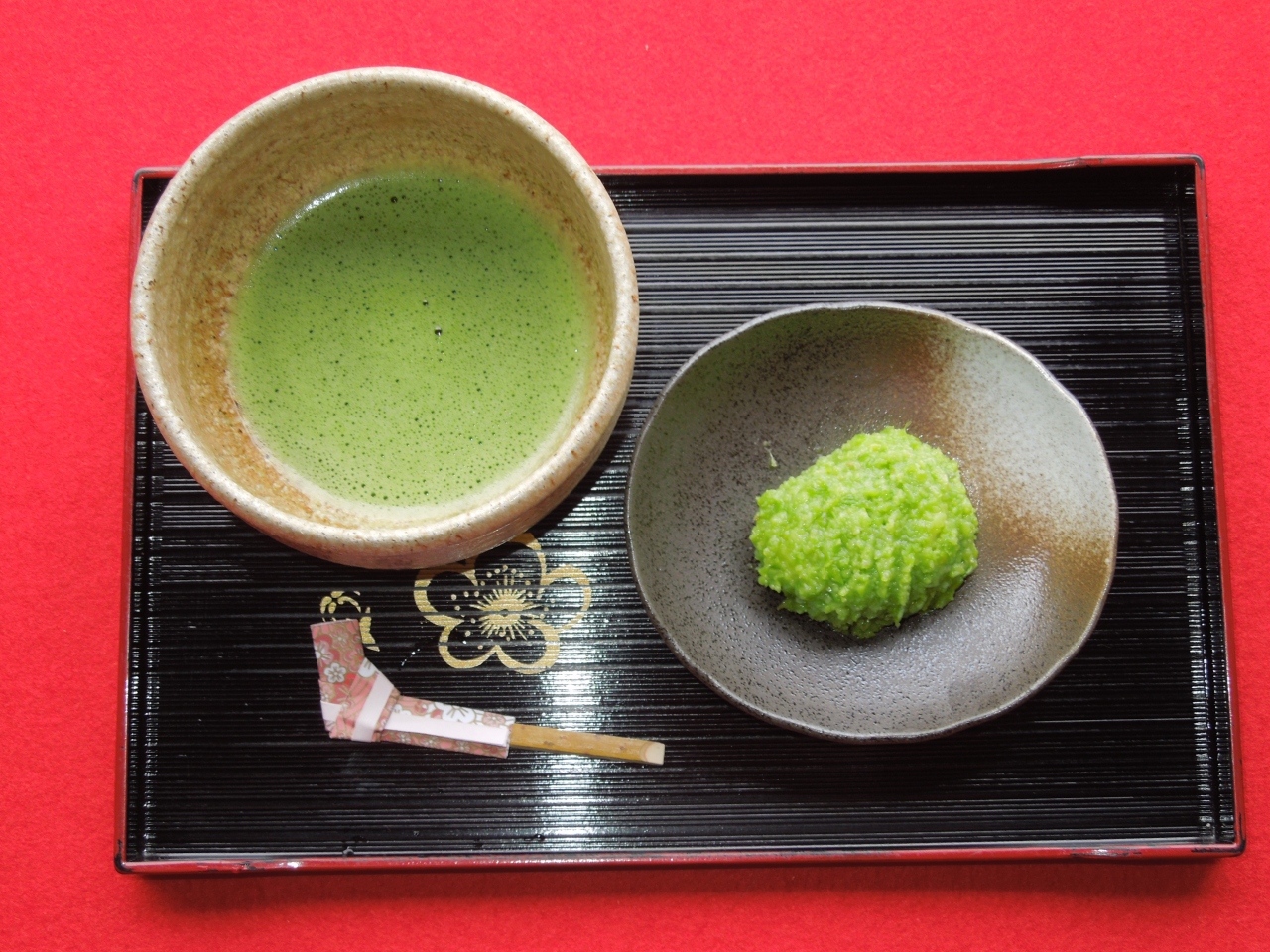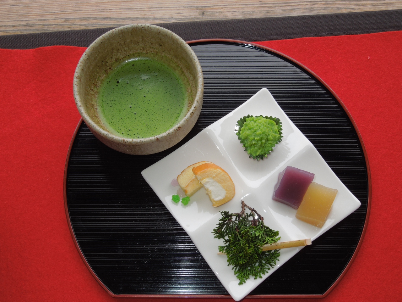 殿さまと奥方が座った位置に妻と二人で座り、殿さま気分でお抹茶をいただきました。