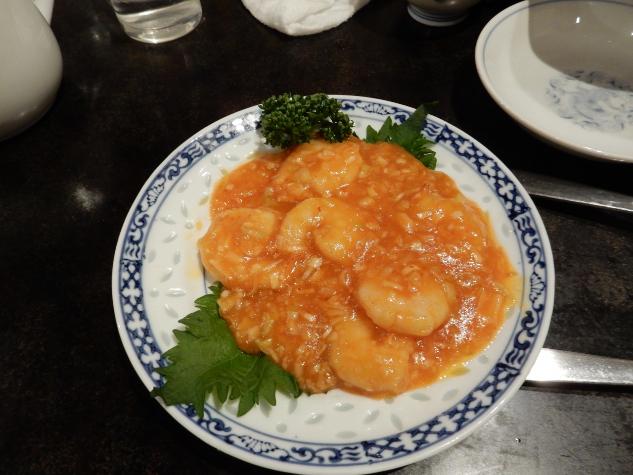2人用のコース、一番安い(二人で5,000円弱)のを選びました。小食の二人には十分な量でしたよ。前菜のクラゲから始まり、エビチリ、蒸し餃子など写真のようなコースで、最後に杏仁豆腐ノデザートで〆でした。お代わり可の暖かいウーロン茶は無料でついています。大変美味しくいただきました。上海蟹のポスターが貼ってありましたが、値段は不明です。