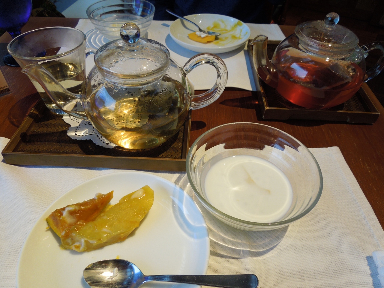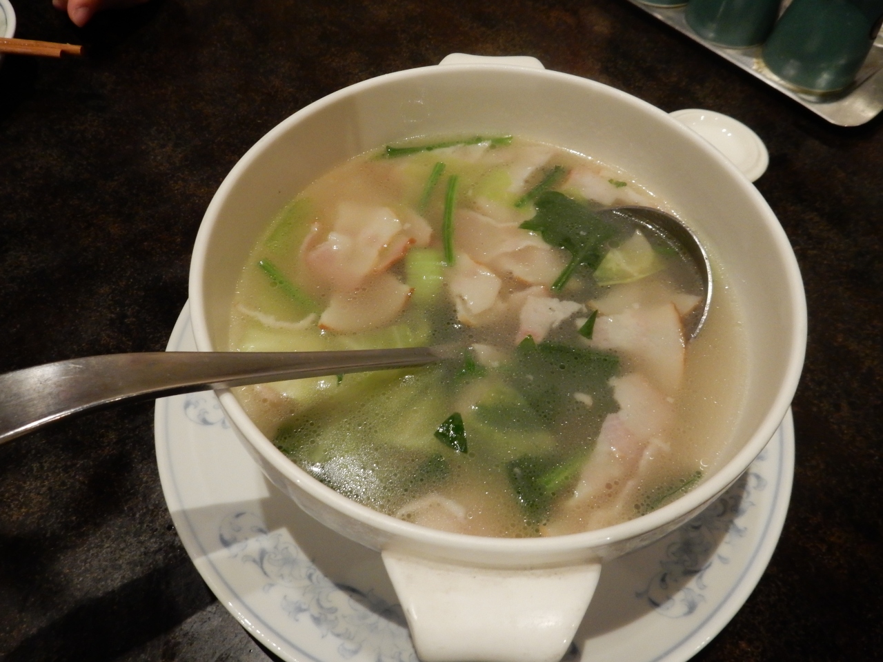 ランチではバイキングが安くて好きなものが食べれて良いかと思いますが、いちいち歩いて取りに行くのが面倒なので、コースで頼んでみました。運んでもらえるので、多少高くなりますが、ゆったり楽しめて良い・・・と思っていたのですが、失敗に気づきました。次々運ばれる料理の量が多い! 食べきれない! これなら好きな料理を選んで食べる方がずっとリーズナブルだ! 小食の我々は、バイキングにすべきでした。反省。