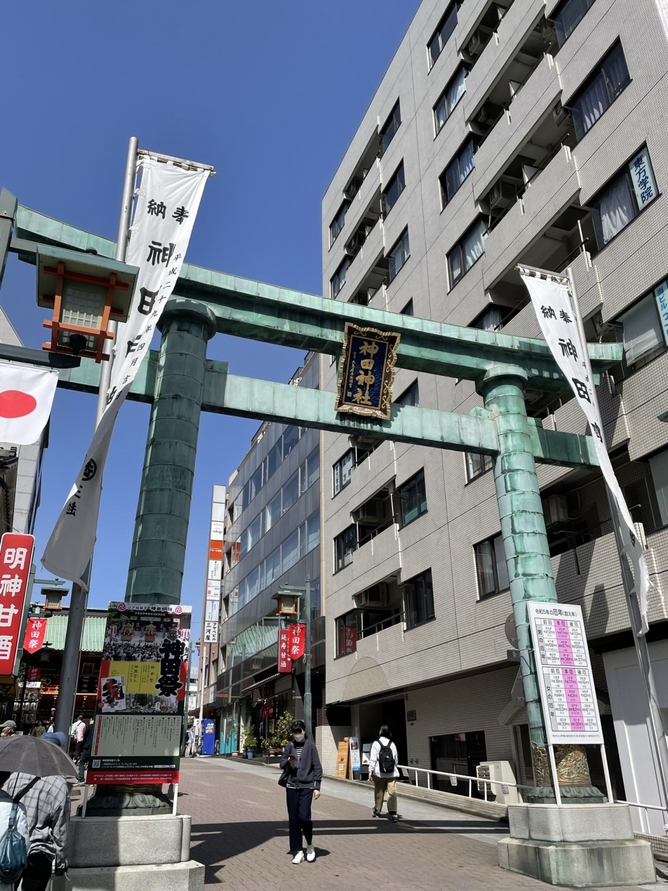 大きなりっぱな鳥居が大通り沿いに建っているので目印になりました。もうすぐ神田祭なので、本殿の裏には神輿が展示されていました。久々の神田明神は休憩所も新しくなっており、参拝後の休憩もできるようになっています。やや様変わりしていて驚きました。