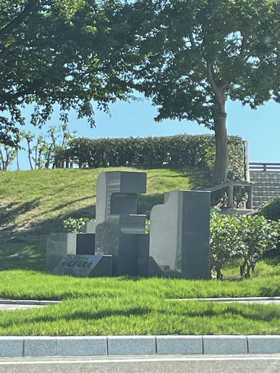 できたばかりなので、珍しいのか休日は地元の方が結構多いそうです。新しいバイパス道路沿いにありました。ここができるまでは道の駅間が結構長かったのでトイレ休憩がな駐車場と施設の間が丘になっているのがちょっと残念です。