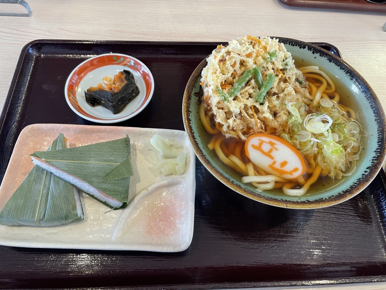 ひさびさに開店中の立山そばを見たので入店。たまにはうどんと、名物のますの寿司とのセットがあったので両方楽しむことができました。ますずしのお店が隣なのでセットメニューがあるみたいです。カウンターはアクリルで仕切られていましたが、お客さんはまばらでした。