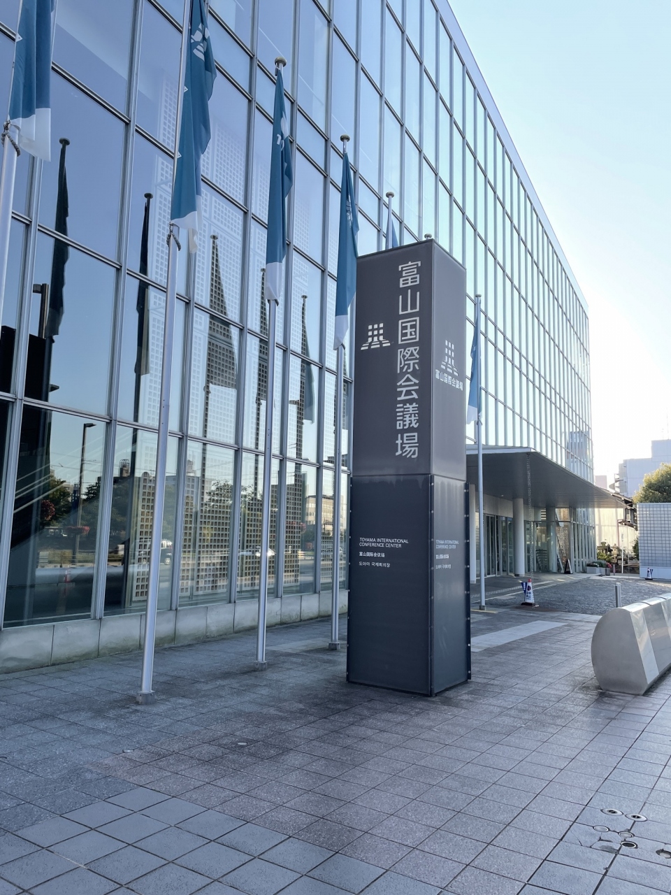昔からある富山の路面電車ですが、市内の環状線化によって、新しくできた駅です。国道41号線から小さな通りに入ってすぐの所にあり、すぐ目の前の国際会議場にアクセスできますがほとんどのお客さんは、向かいのANAホテルや城址公園が目的の様です。
