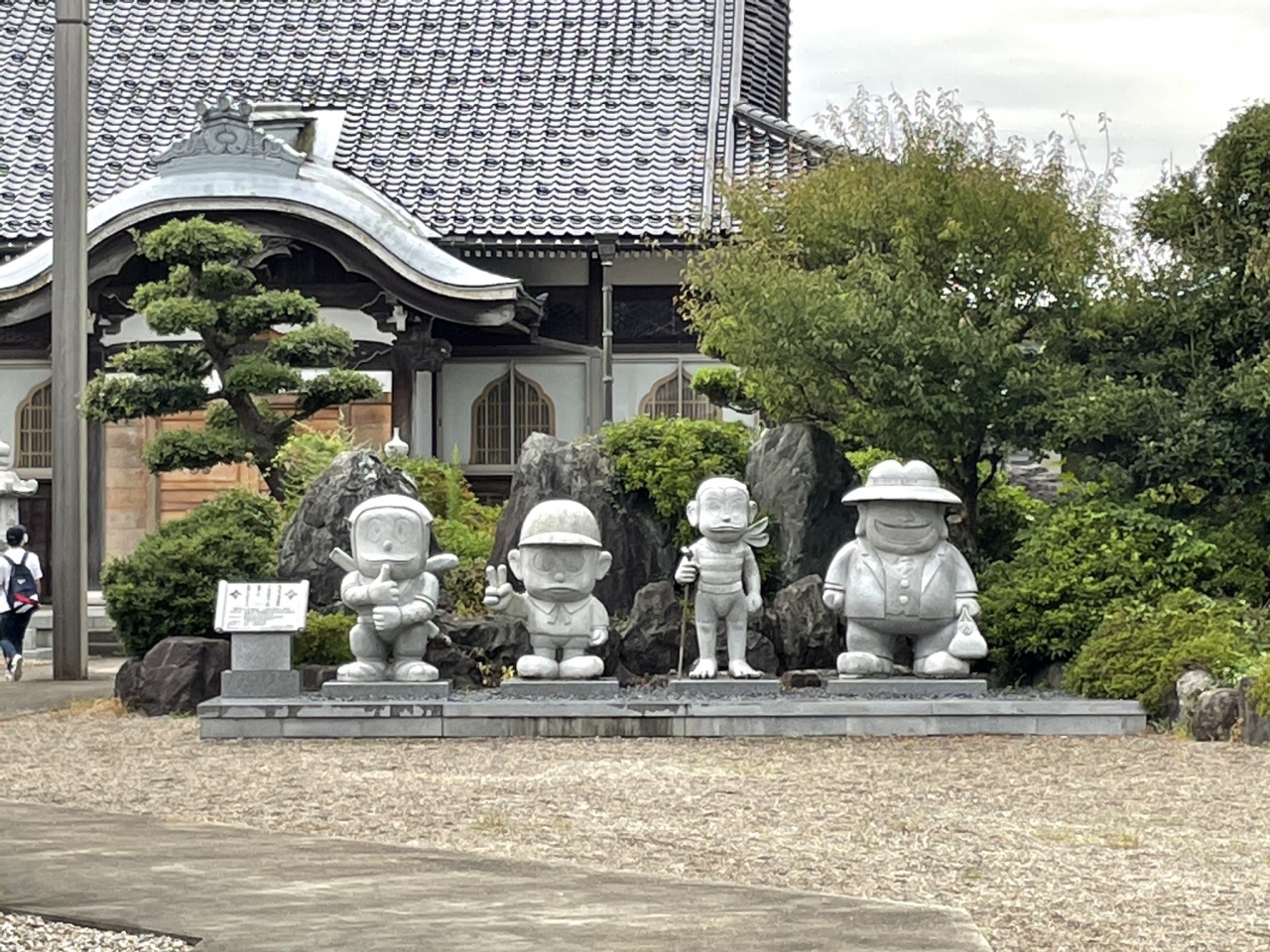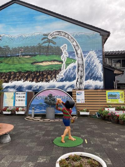 小さな公園でしたが、離れてみると、家の外壁に漫画で見たことがあるようなグリーンの風景が描かれており、昔プロゴルファー猿を読んでた頃を思い出しました。等身大の像があり、思っていたよりも小さかったのが印象的でした。