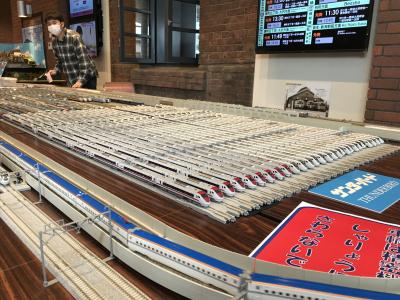 ジオパークの関連施設だと思うのですが、鉄道のジオラマが凄すぎて驚きました。有料の施設ですが、好みの電車を操作できるのが大人気だそうです。この日は北陸線関係のたくさんの電車の模型が展示されていました。ジオラマを一周するだけで中々の時間がかかりました。