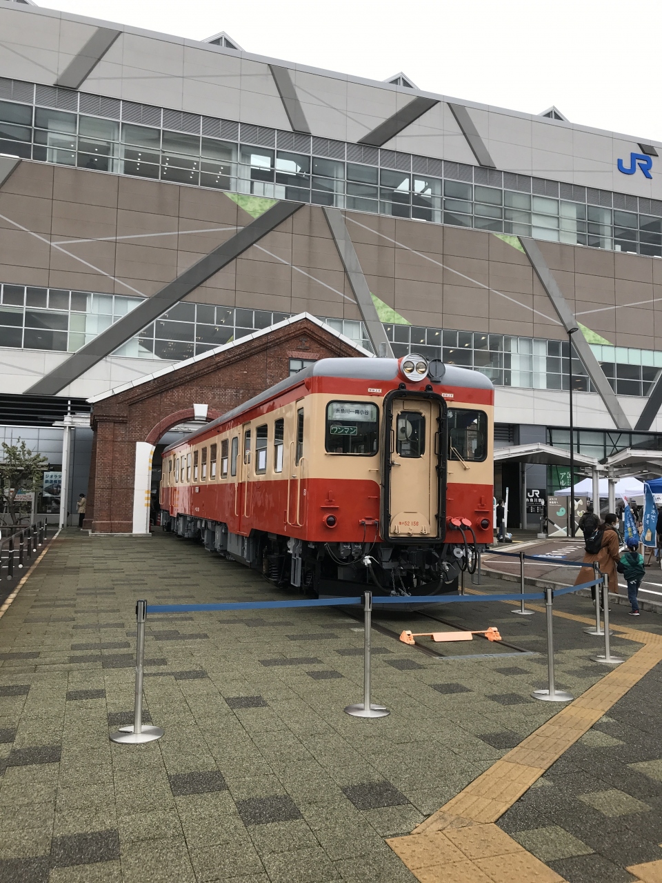 たまたま運よくイベントの日にあたりました。普段は施設内で展示されている、かつての大糸線で運行されていたディーゼル車が、敷設されていたレールで外に展示されていました。年に一度このような鉄道関係のお祭りがあるらしく、たくさんの人でにぎわっていました。