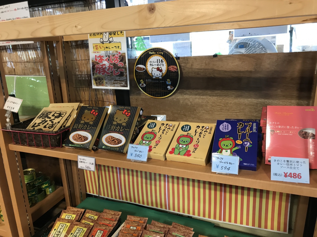 松川にある道の駅、松本に入る前のトイレ休憩に使わせてもらいましたが、駐車場が少なく車の行列状態でした。店内は地場産の野菜や加工食品をたくさん扱っていましたが、地元産のオリジナルカレーが結構目につきました。
