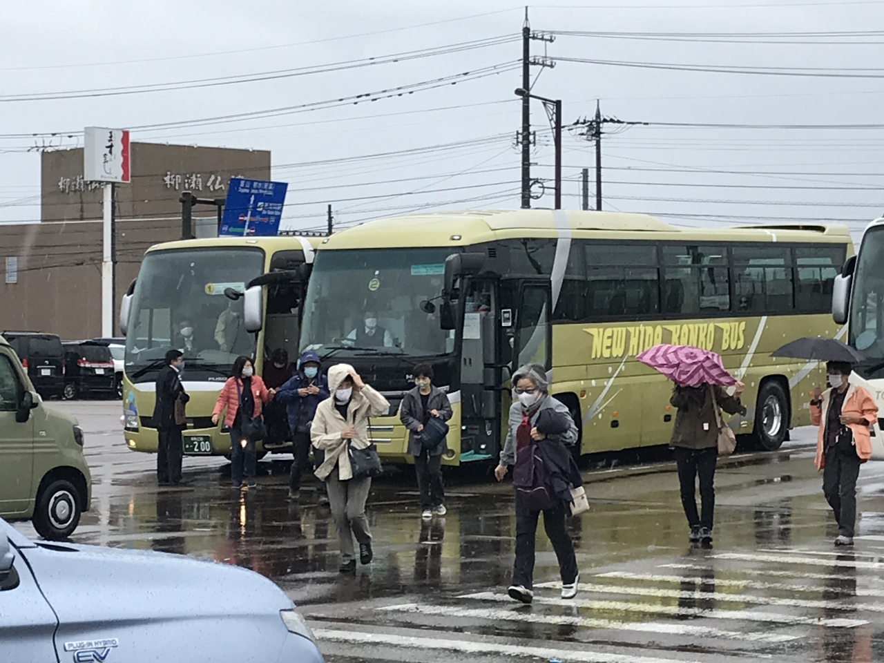 道の駅としてはとても大きな駐車場があります。普通車のコーナーと、半分ぐらいは大型トラックや観光バス用のコーナーに分かれています。コロナ禍でめったに観光バスは見かけなくなりましたが、この日はとても久しぶりに団体さんのバスが数台訪れていました。