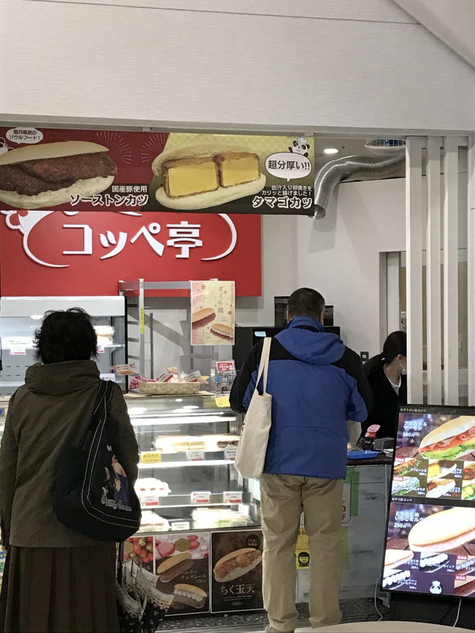ハピリンの中で見つけたコッペパンのお店です。コッペパンっていろいろな食べ方があるもんだと発見させられました。オーソドックスなクリームのサンドからソースカツやいろいろな総菜のサンドまで。選ぶのも楽しませてくれました。