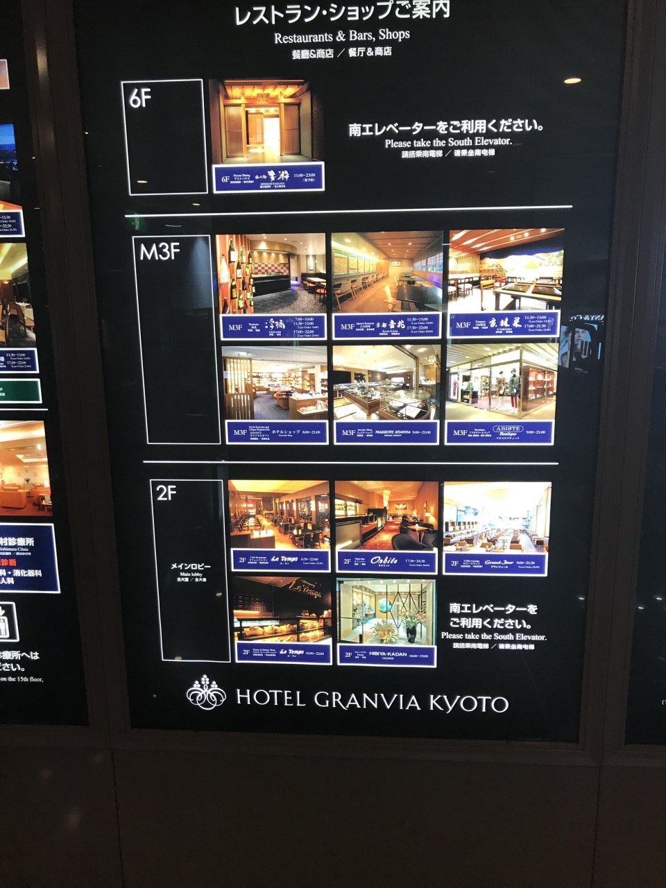 京都駅直結なので、駅ビル自身がホテルになっているような感じでした。いろいろなショップもホテル周辺にたくさんあるので便利でしたが、ホテル施設を出ると人込みが凄いので、食事はホテルのレストランでとりました。和洋いろいろありました。