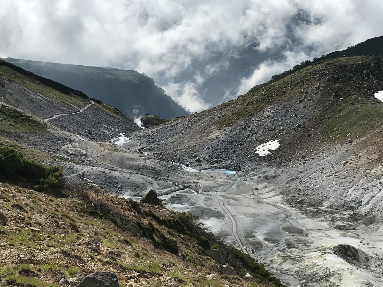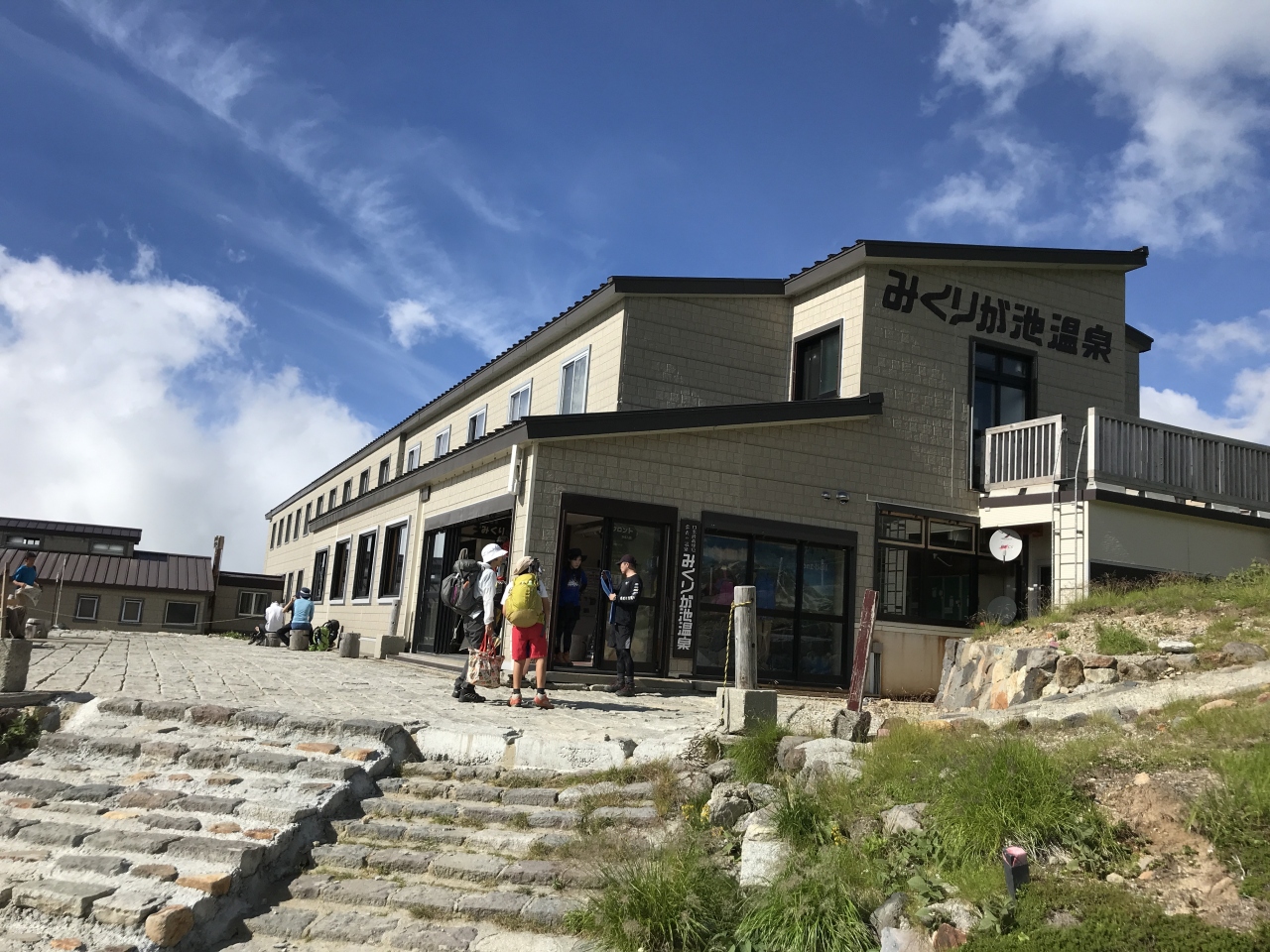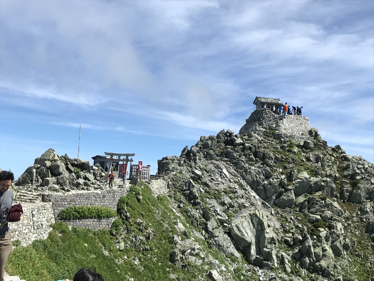 巨大な立山杉のご神木が林立している参道。とても神々しい境内が長く続きます。祈願殿前では、自分のように立山登山を終えてから参拝に来た方々が大勢いらっしゃいました。駐車場は少ないので参拝の際は気をつけなければなりませんでした。