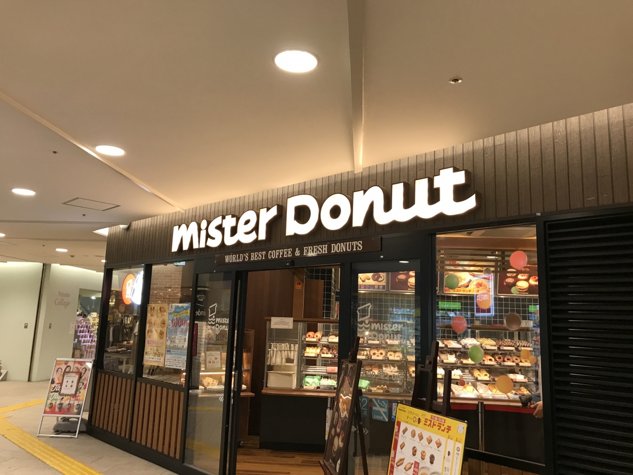 いつもは一人で入るのがつらいミスドですが、この日は甘いものが食べたくて勇気を出して入店しました。苦いコーヒーと甘いドーナツの組み合わせは疲れた時に最高のご褒美だと思います。駅ビルの中にあるのが一休みするときにちょうどいいです。