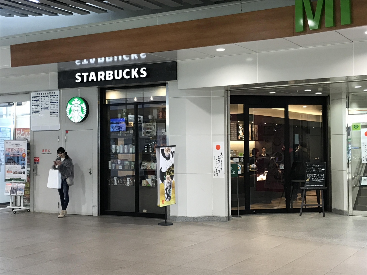松本駅前なのですが、駅側から見ると広場を挟んで100mぐらい離れています。時間つぶしにコーヒー飲みにまた引き返すには何だかビミョーな距離感がありました。近くのスタバに行くか、歩いて100円コーヒー飲みに行くか、ちっちゃい葛藤がありました。