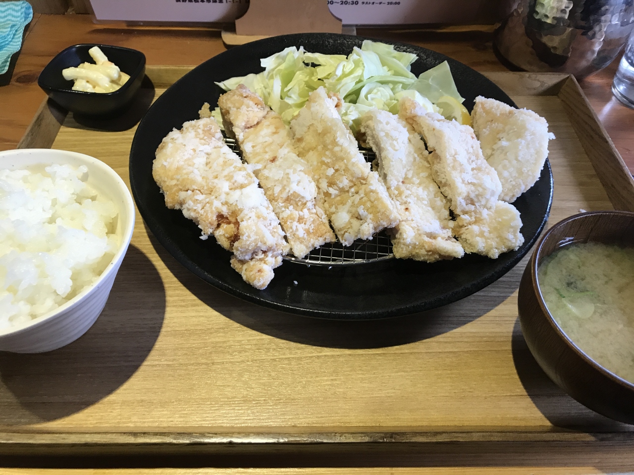 お昼時間を外すことをお勧めします。必ず待たされますが、iPadのようなものに名前を書いて、表のベンチで待つので苦ではありませんが、回転が悪いので待つときは結構待たされます。からあげはかなりのボリュームの大きさですが、カラッと揚げているので最後まで美味しくいただけました。