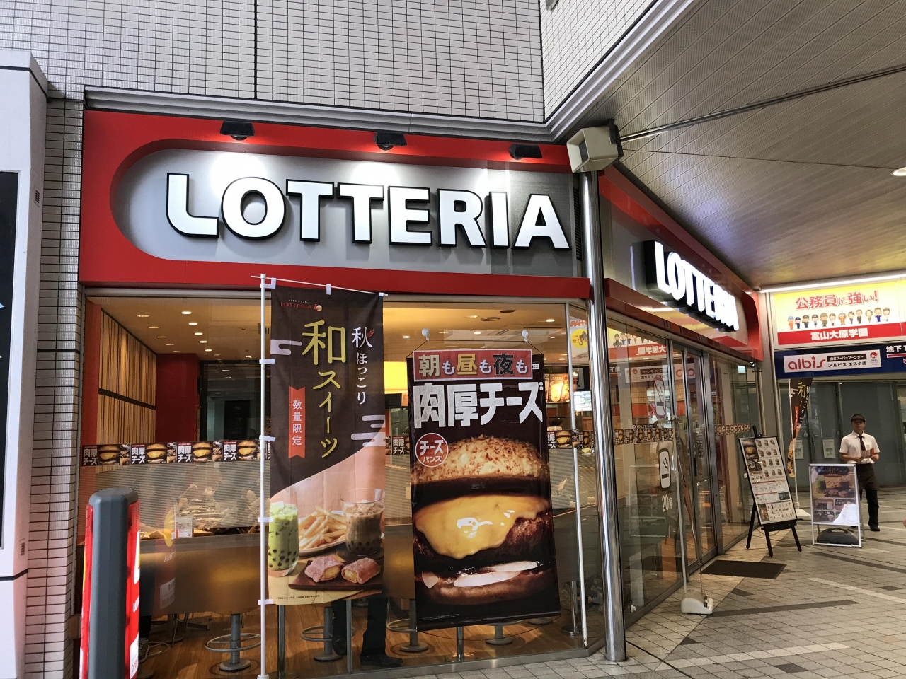 富山地鉄の駅ビルの中、改札のすぐ手前にあります。電車の時間待ちにちょうどいいのですが、同じような時間待ちの高校生でいっぱいでした。しかたなく、テイクアウトで広い待ち合わせ室で食事しました。便利な場所だけに結構学生さんであふれています。