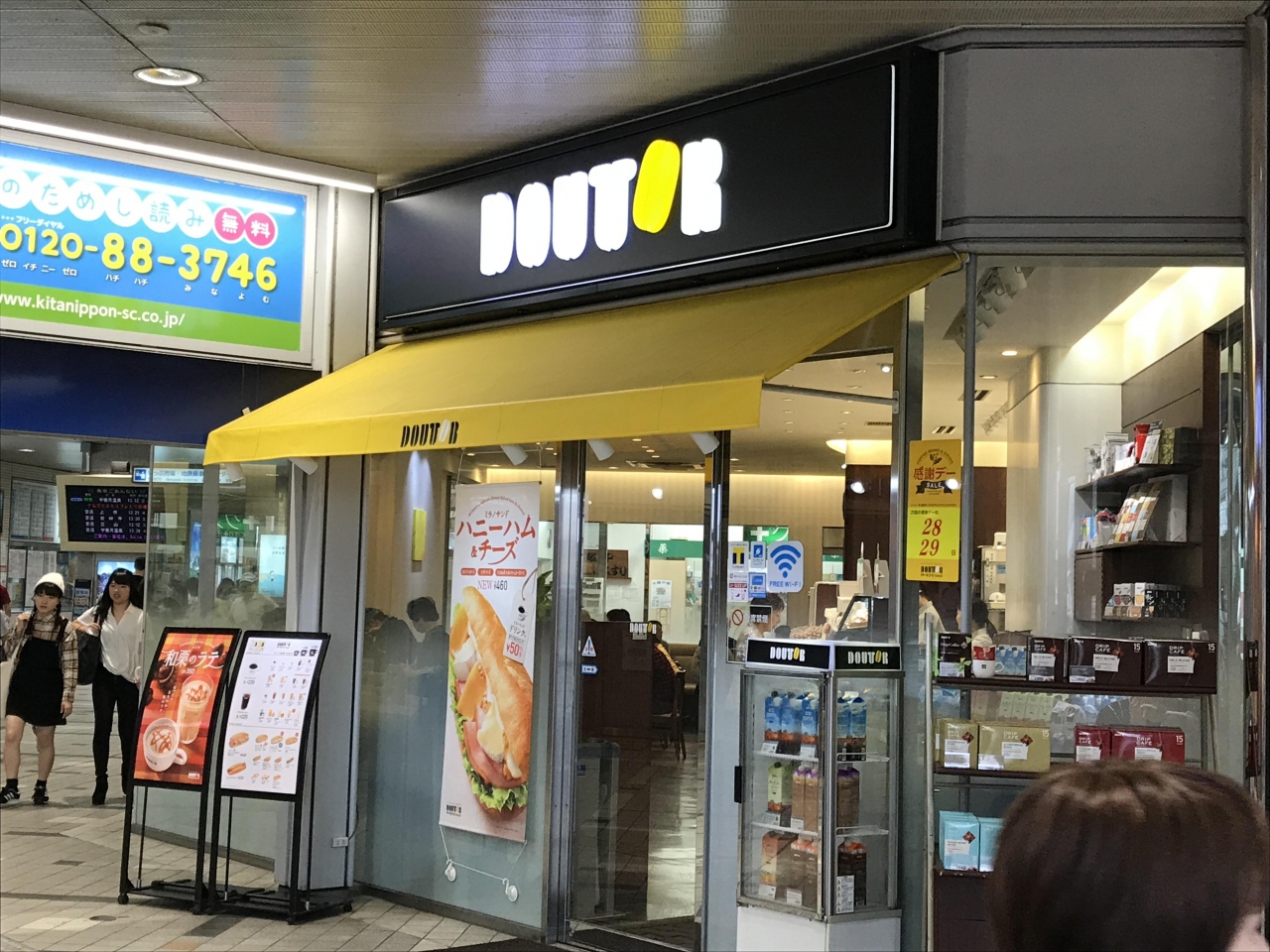 富山地鉄の駅ビルの改札前にあります。近くにはスタバ、向かいにロッテリアがありますが、どちらもたいがい満員です。ドトールではサンドイッチが欲しかったので空きができるまで少し待ちました。向かいのロッテリアは学生が多いのですが、なぜかここのドトールは年配のお客さんの割合が多いです。