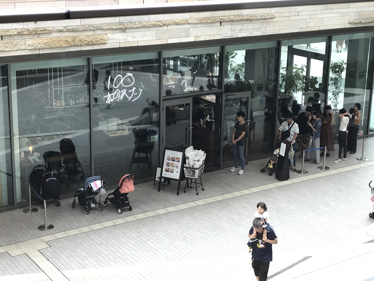 場所柄ベビーカーがお供の子供連れが多いです。オシャレな店内で、しかも親子連れには優しいお店でした。どうも離乳食はサービスの様で、お父さんお母さんも気兼ねなく食事できるところが人気の様です。ただ、店外からの行列の待ち時間が結構あるので暑い日は子供さんに気をつけなければなりません。