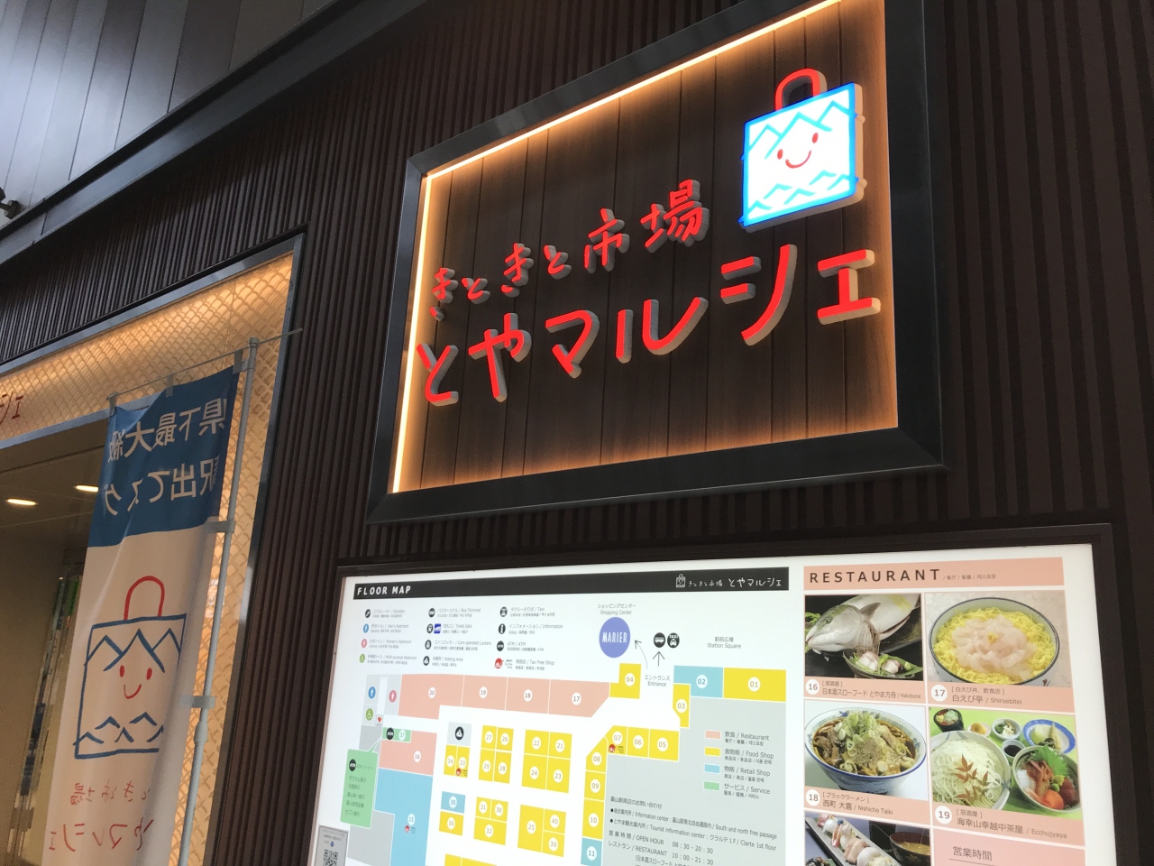 富山駅の一階フロアがマルシェとなっています。富山のお土産品の主だったものはほとんどここで賄えます。新幹線に搭乗前に買い忘れたお土産品や食事にも利用できるので、結構地元の方の利用も多いそうです。冷凍品も宅急便で送れるので助かりました。